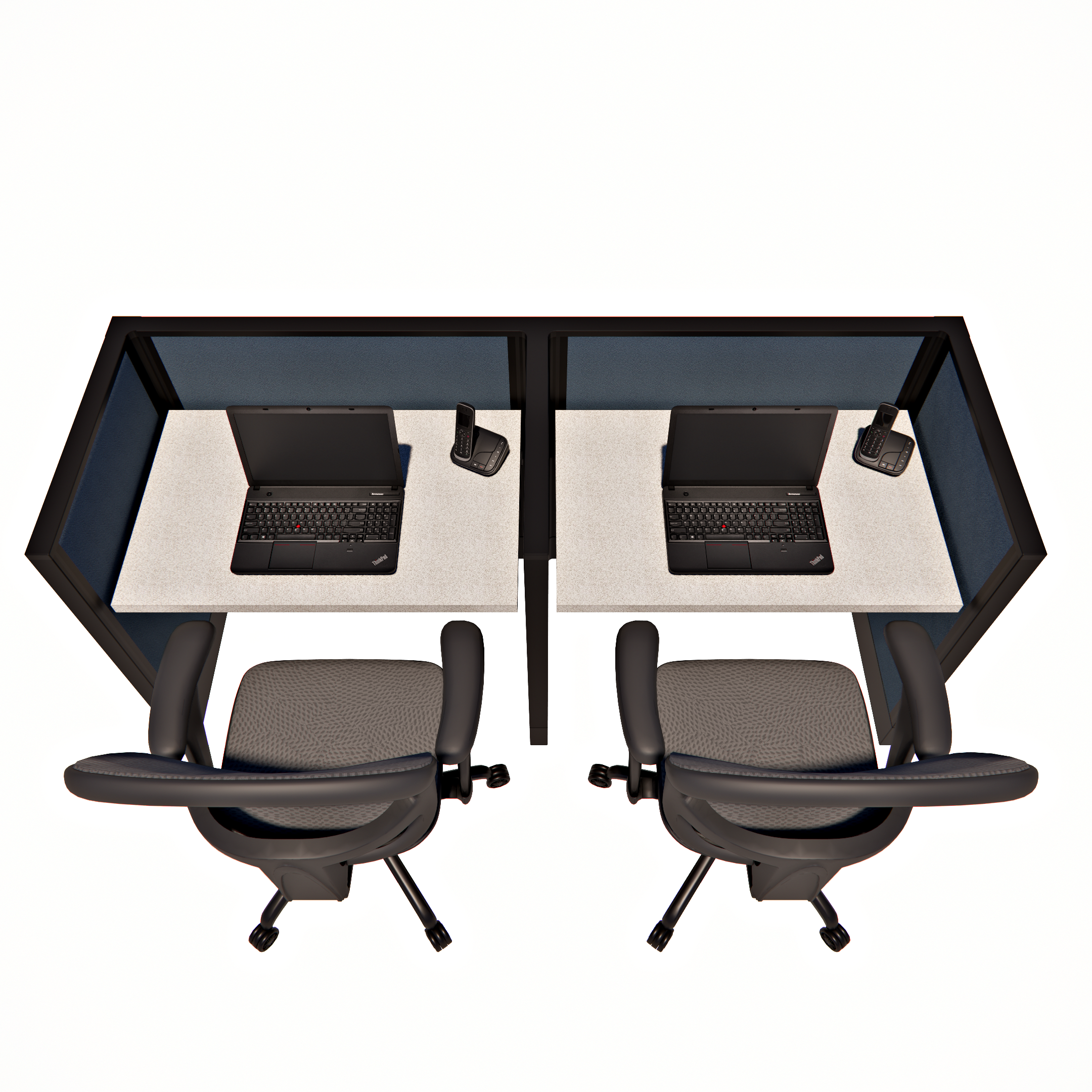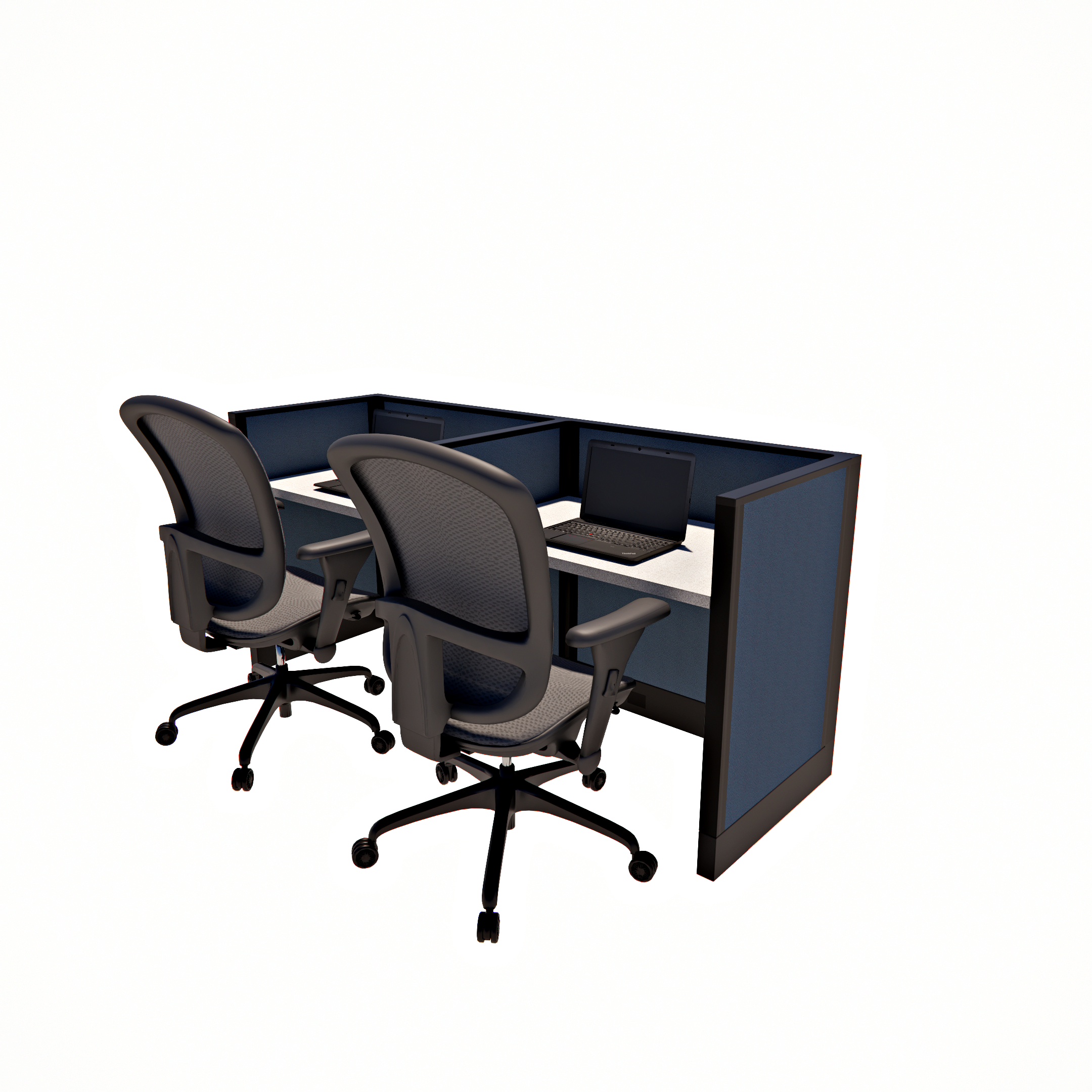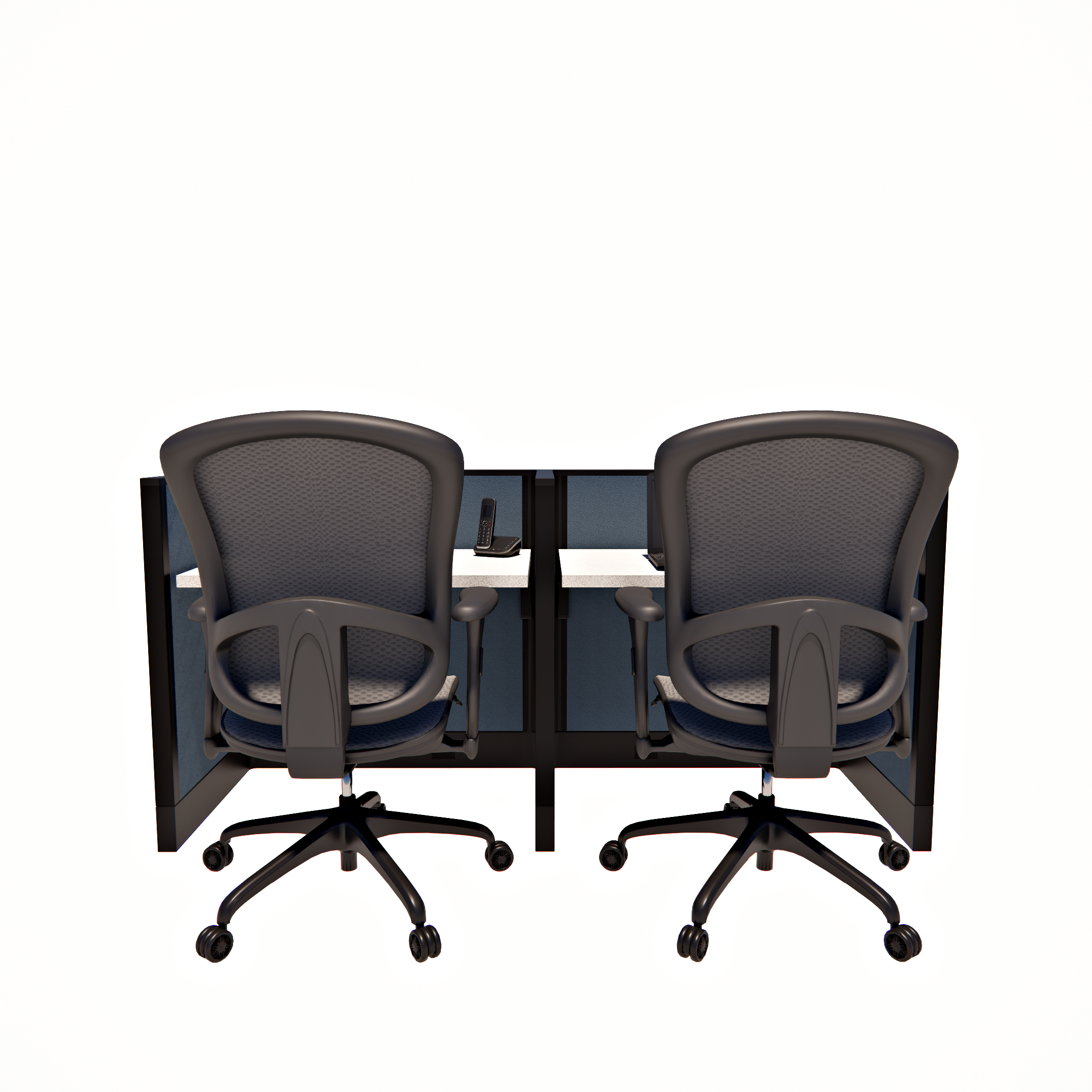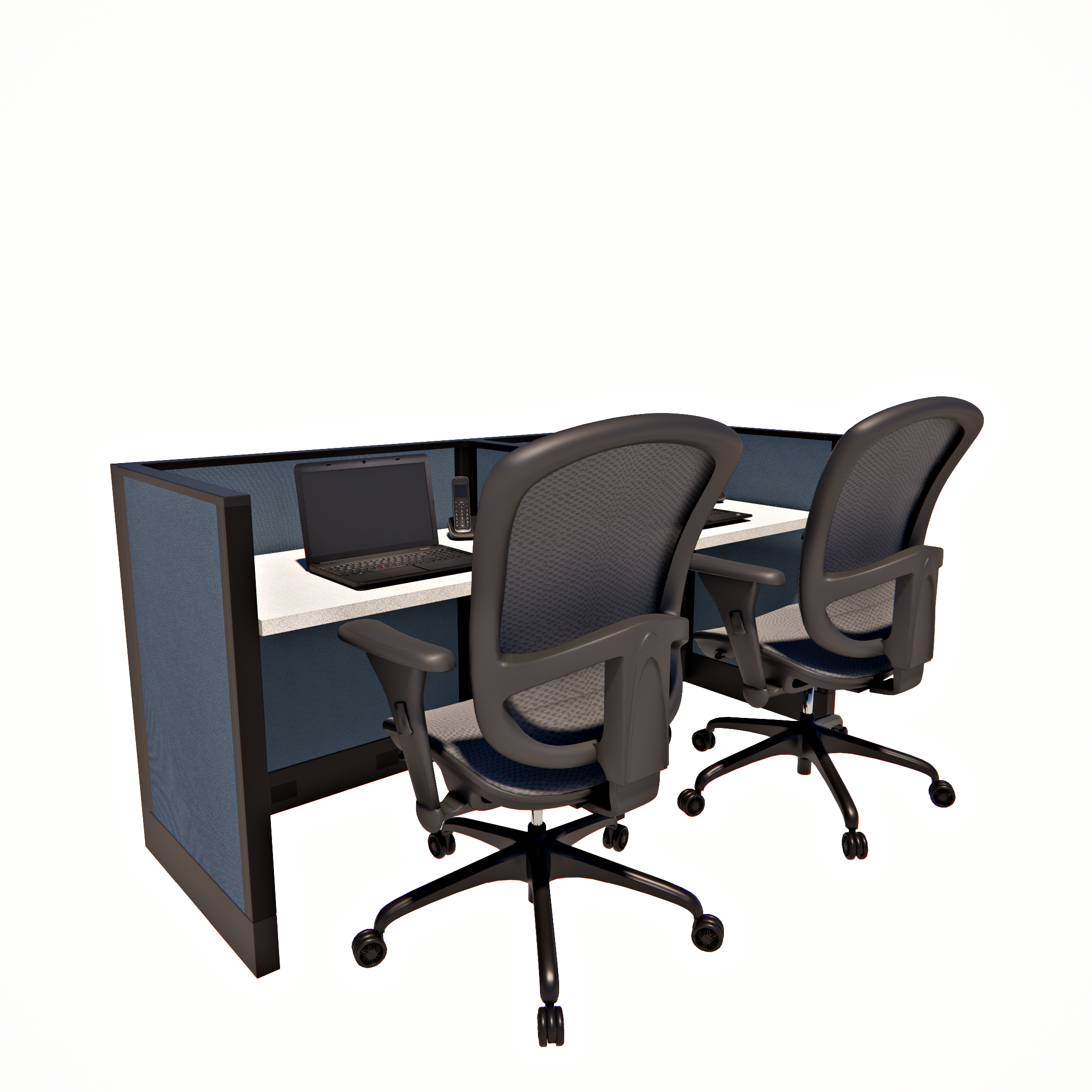 Our 39″ tall, 3′ x 2′ Call Center Cubes, arranged in a line of two, provide an efficient and space-saving solution for collaborative environments. With panels standing only 9″ above the desk surface, these compact cubicles offer a low-profile design that maximizes floor space while still providing a degree of privacy. Perfect for call centers or high-traffic workspaces, this setup ensures a productive yet open layout for teams to work closely together.