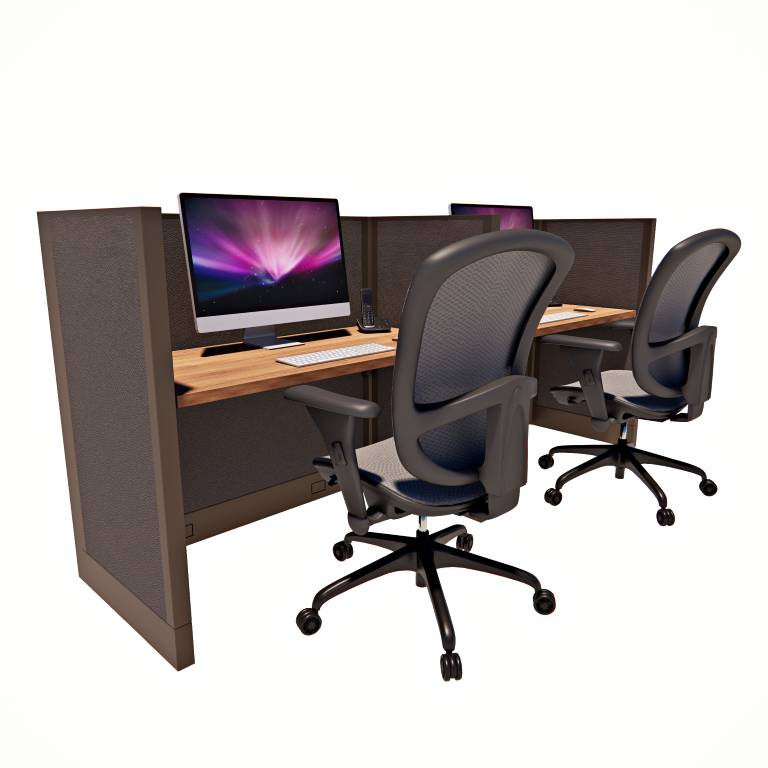 Designed for small teams, the 47″ 2′ x 4′ Call Center Station Line of 2 creates an efficient and organized workspace. This configuration ensures each employee has the privacy needed for productive and distraction-free communication.