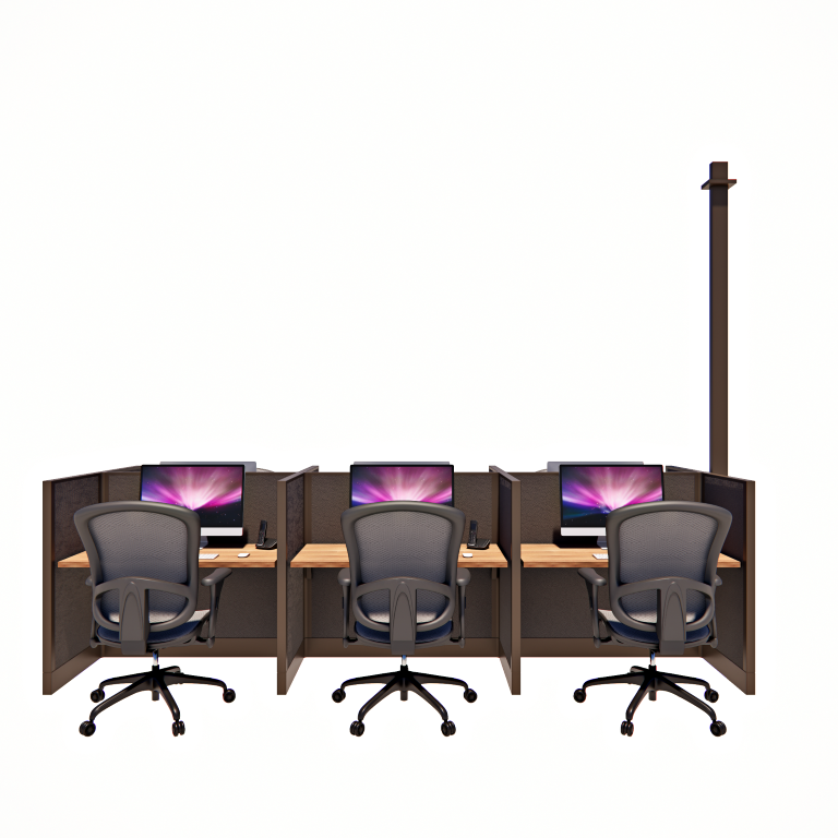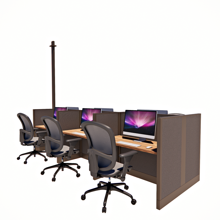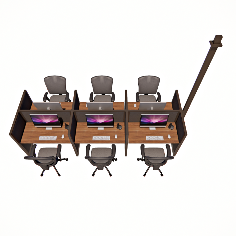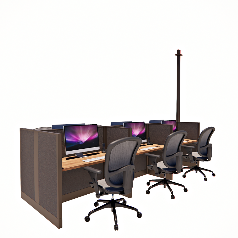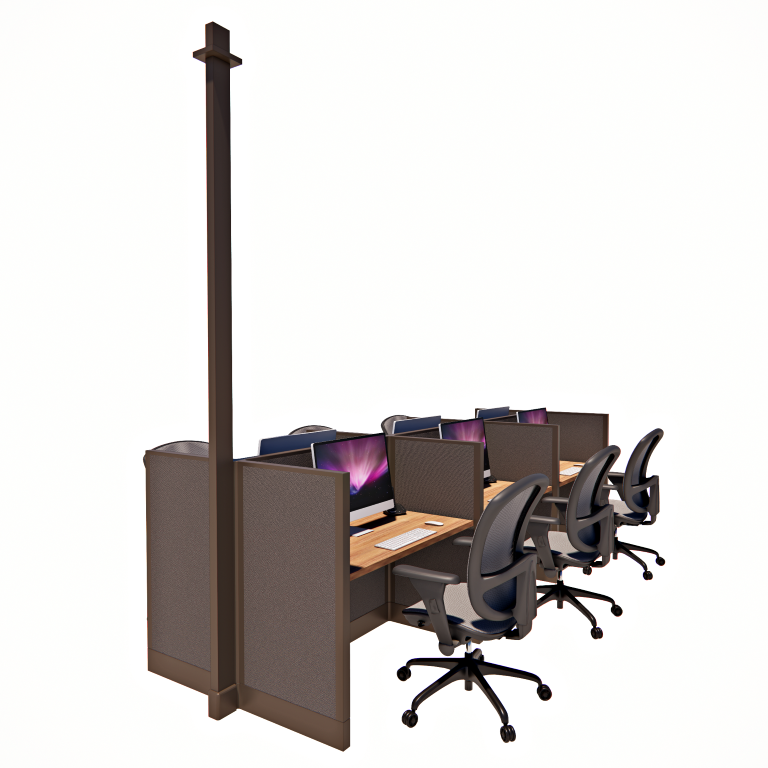 Optimize medium-sized teams with the 47″ 2′ x 4′ Call Center Station Pod of 6. This configuration offers each employee a focused work area while encouraging seamless team communication in a compact footprint.