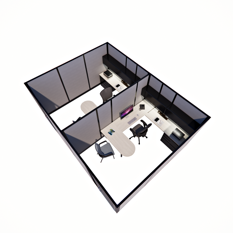 Create an efficient workspace with our 85″ tall, 8′ x 12′ Private Offices, arranged in a line of two. Each office is equipped with full-height panels and a locking door for maximum privacy and security. Perfect for paired team members or dual workspaces, this layout ensures a professional and productive environment while maintaining individual focus.