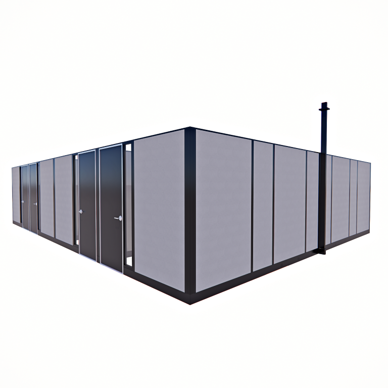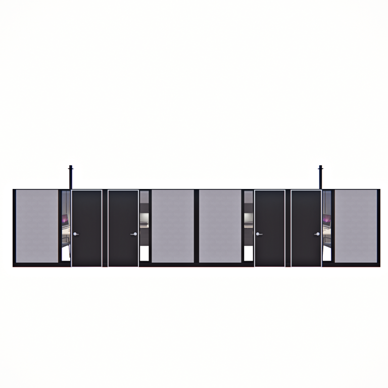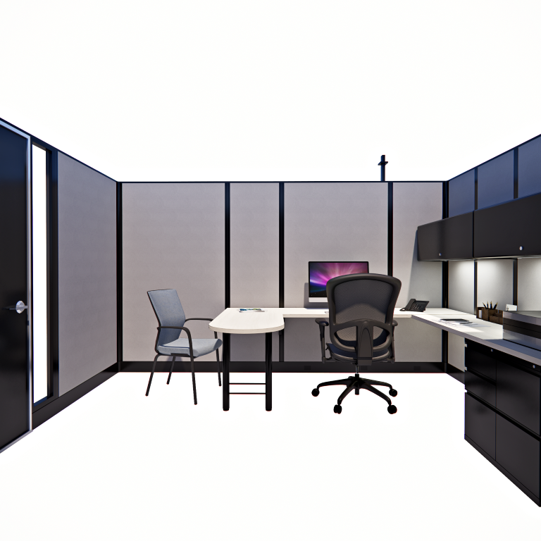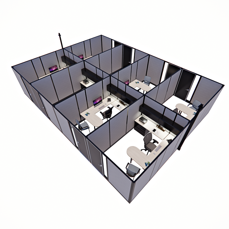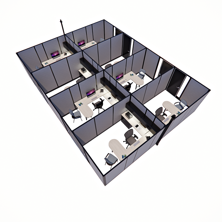 Enhance large team operations with our 85″ tall, 8′ x 12′ Private Offices, arranged in a pod of eight. Designed to accommodate multiple team members, each office ensures privacy with full-height panels and a locking door. This layout is ideal for busy workplaces needing a secure, organized, and modern workspace.