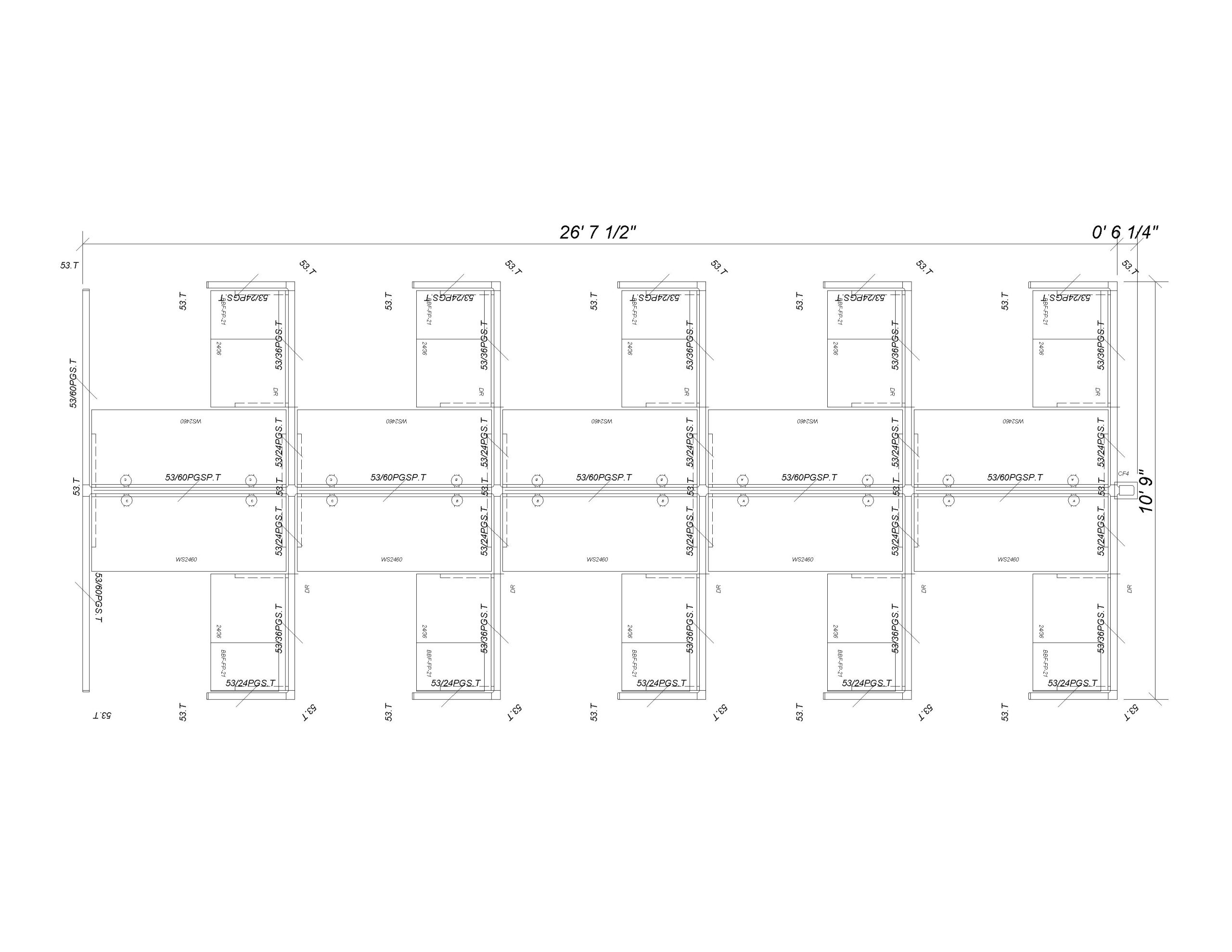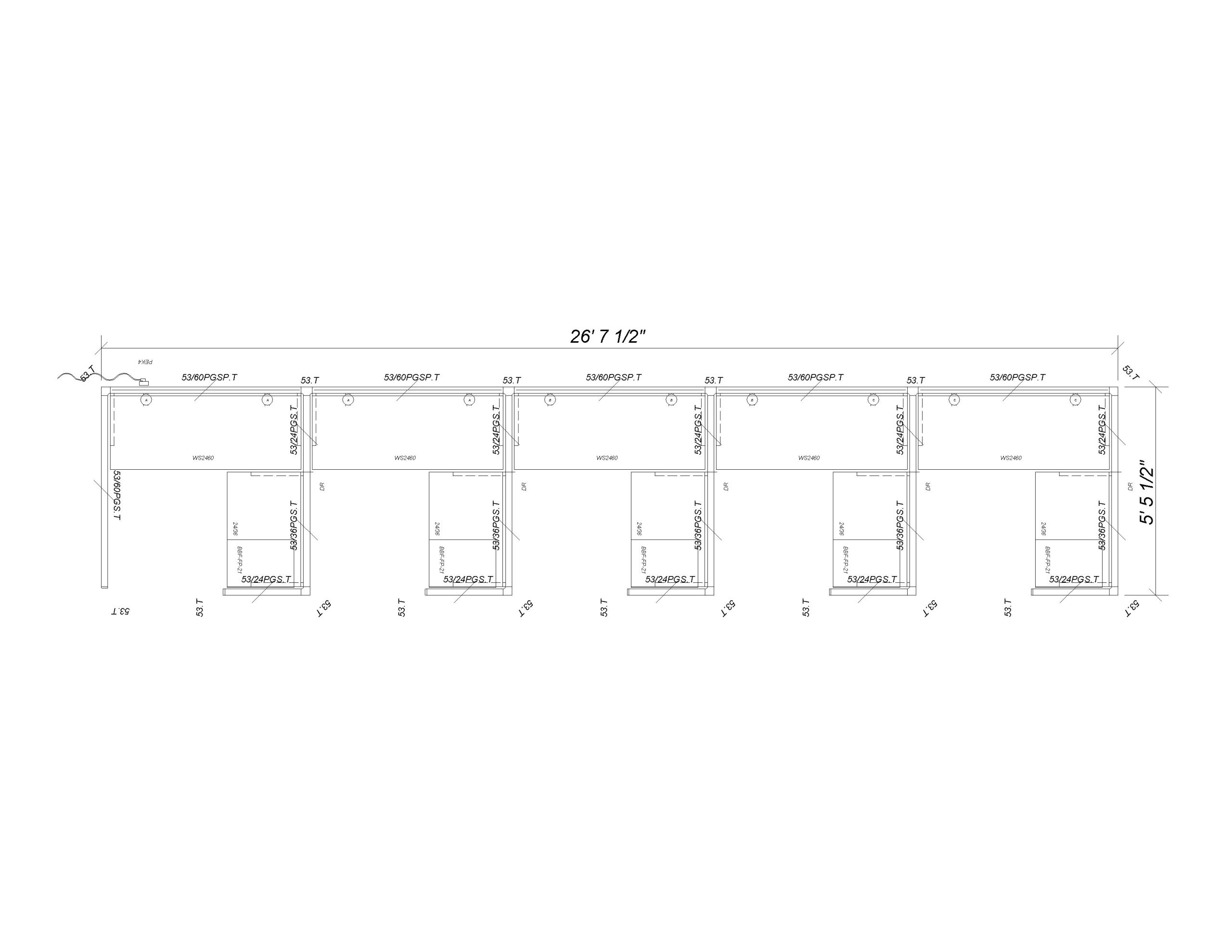 53″ Tall 5’x 5′ Line Of 5 Office Cubicles with Glass