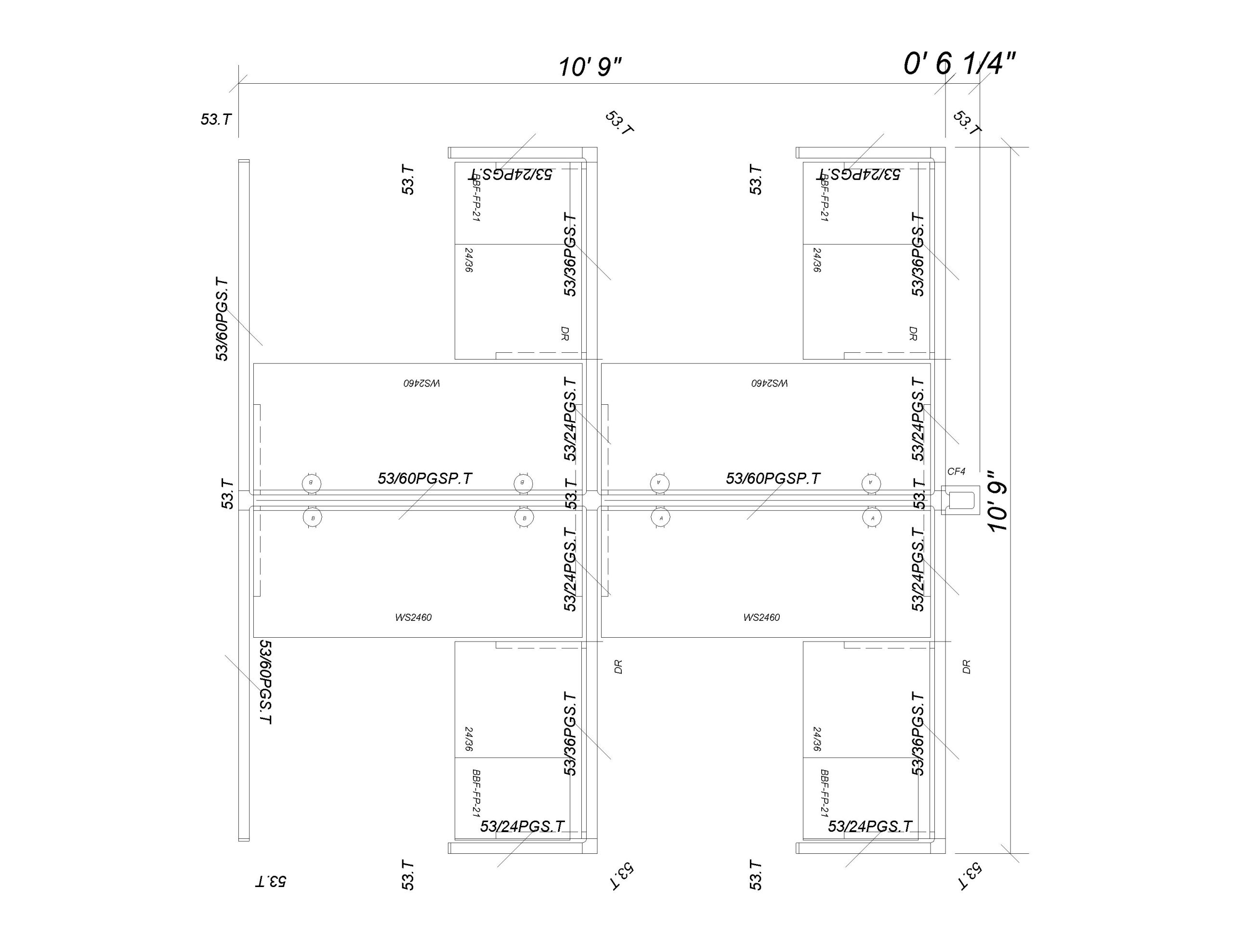 53″ Tall 5’x 5′ Pod of 2 Office Cubicles with Glass