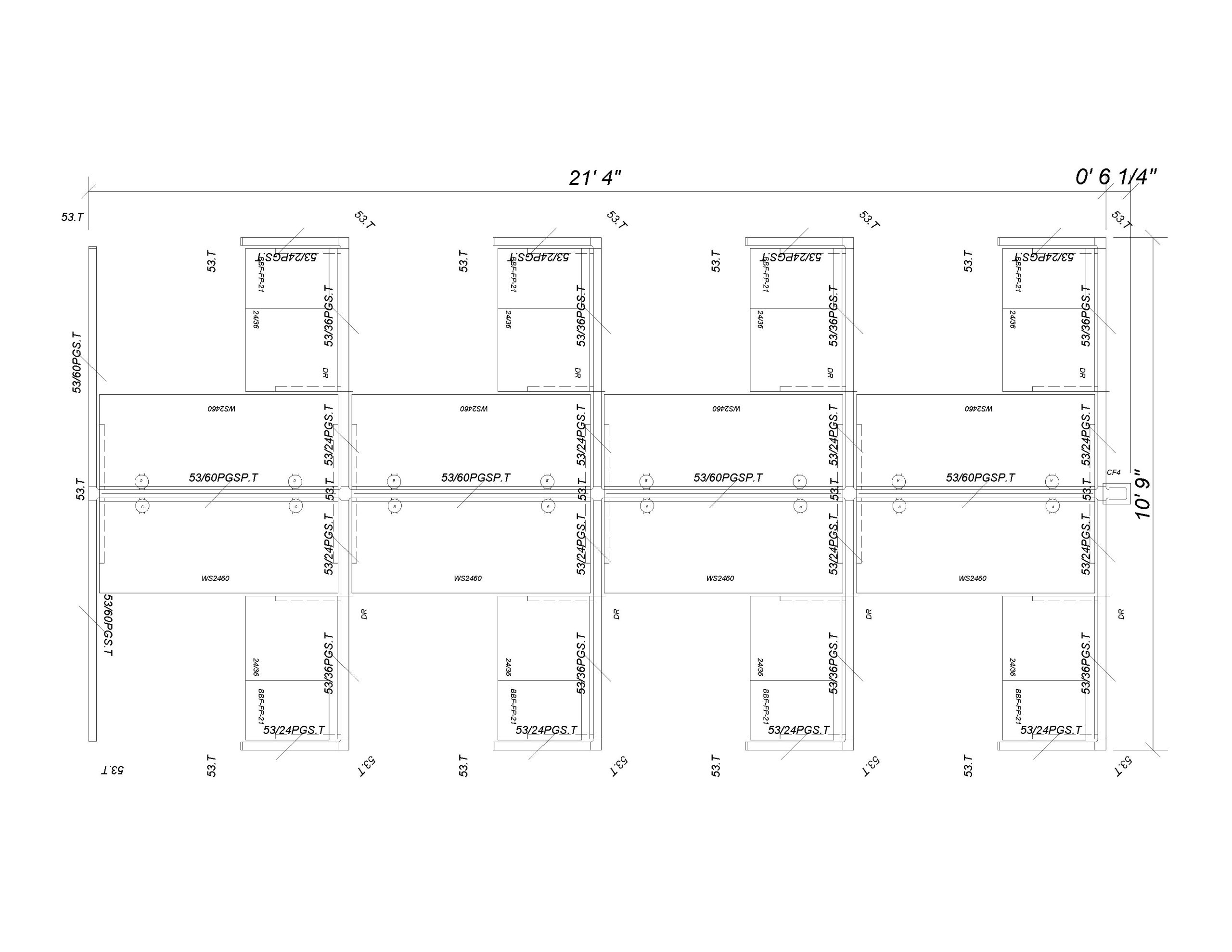 53″ Tall 5’x 5′ Pod of 8 Office Cubicles with Glass