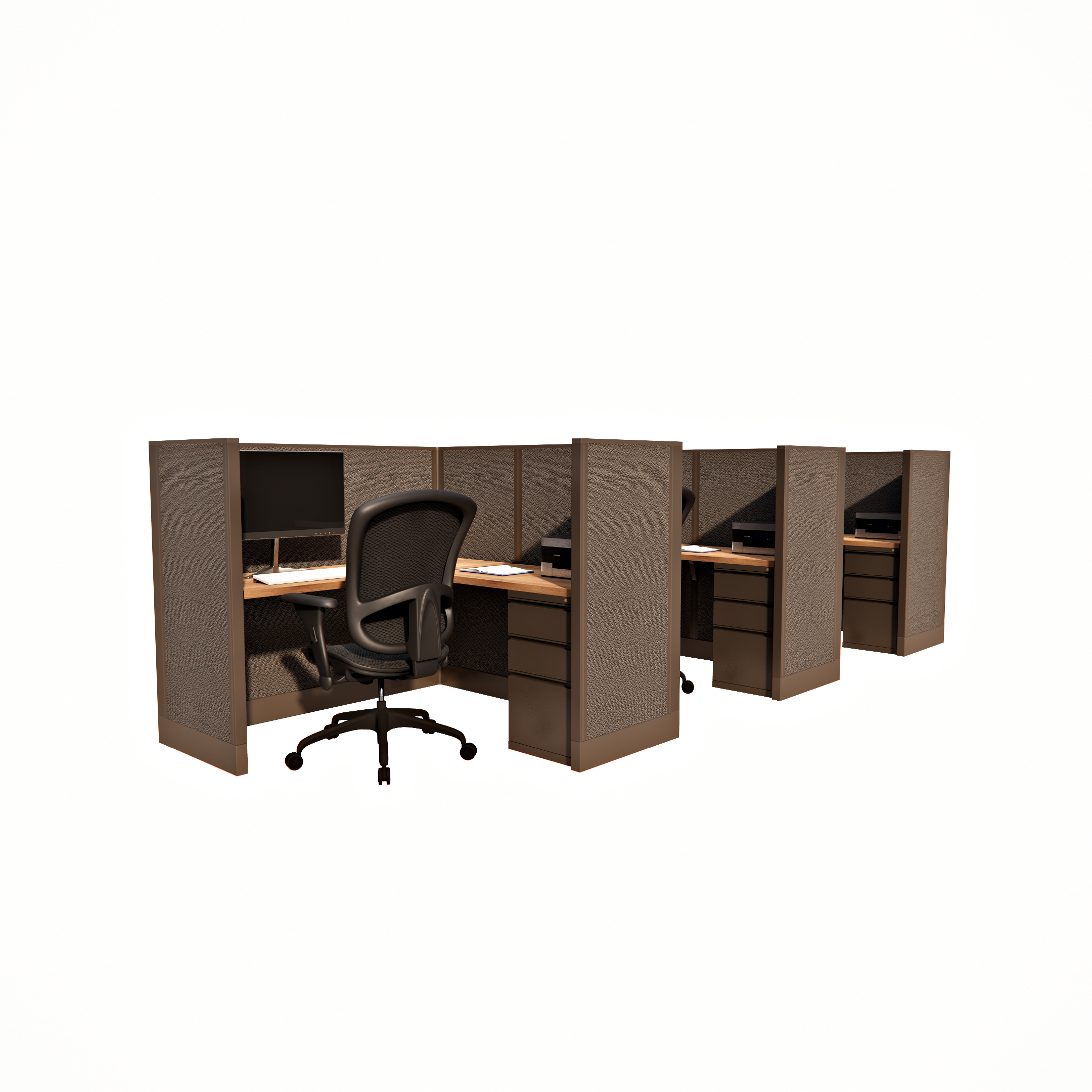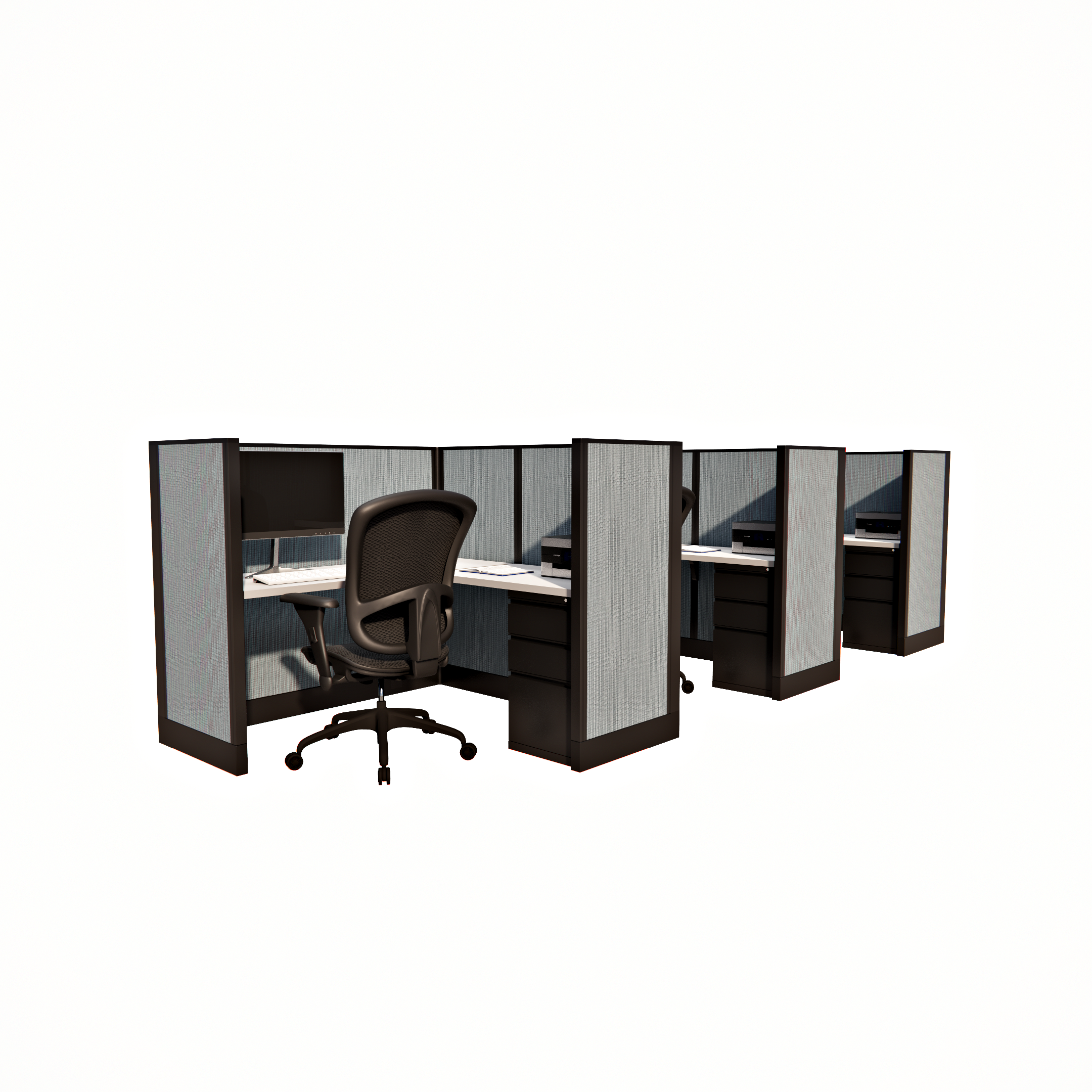 This 53″ tall line of three 5’x5′ office cubicles provides an efficient layout for small teams, offering individual workspaces with a cohesive, connected feel. Outfitted with fabric panels, each station includes a durable laminate worksurface that resists wear while adding a modern touch. With built-in power accessibility, this configuration supports seamless device usage, making it a smart choice for collaborative environments that still value personal space and productivity.