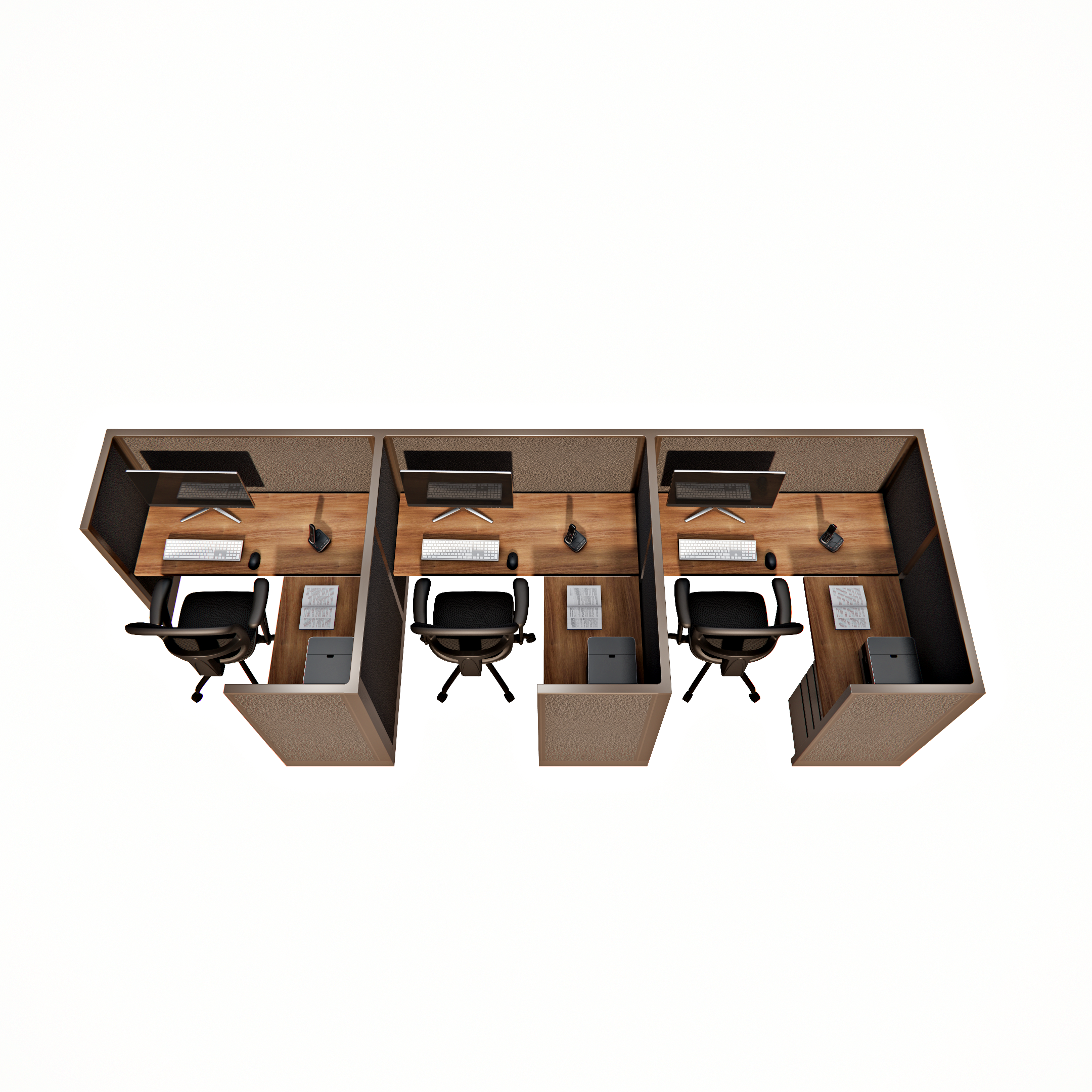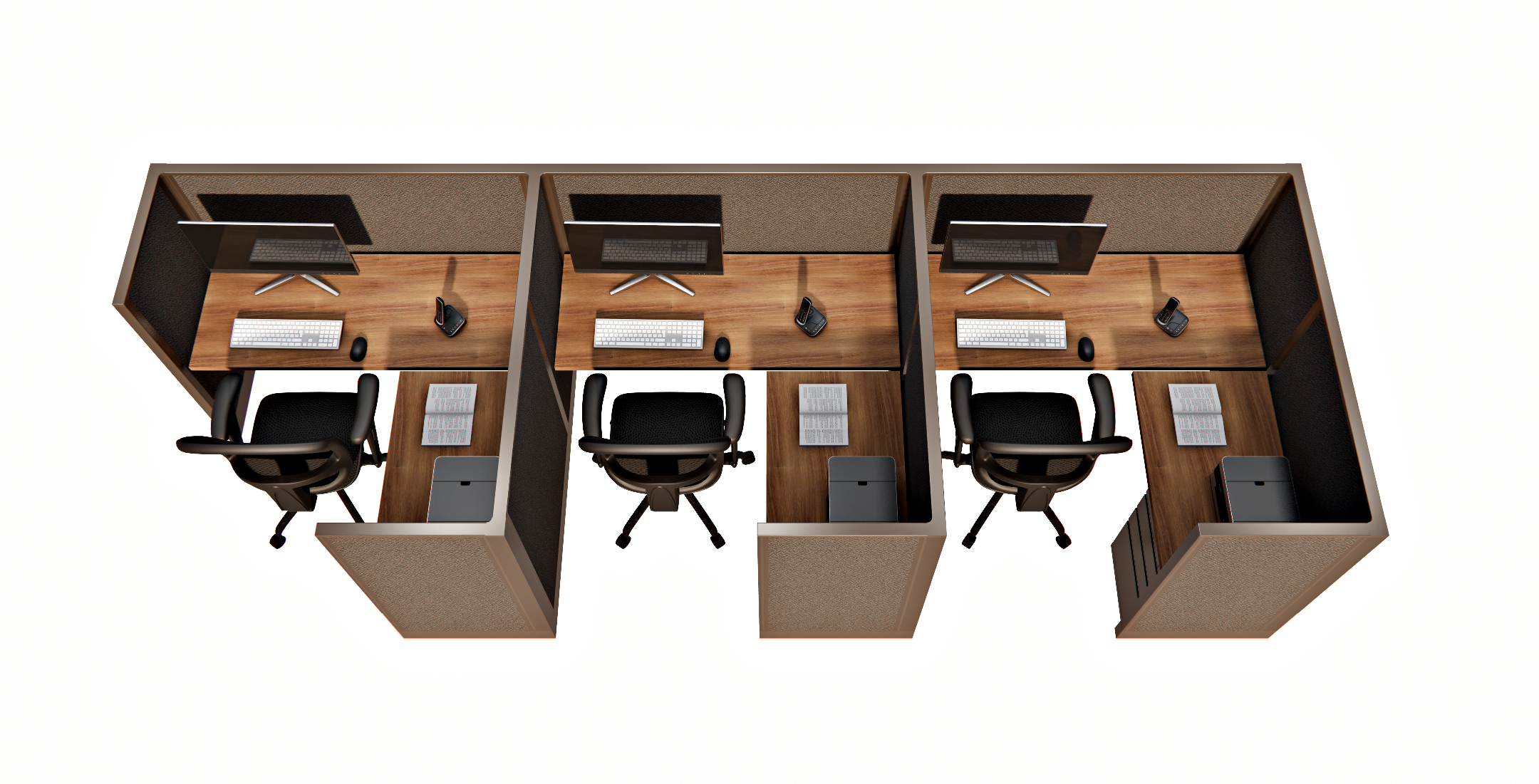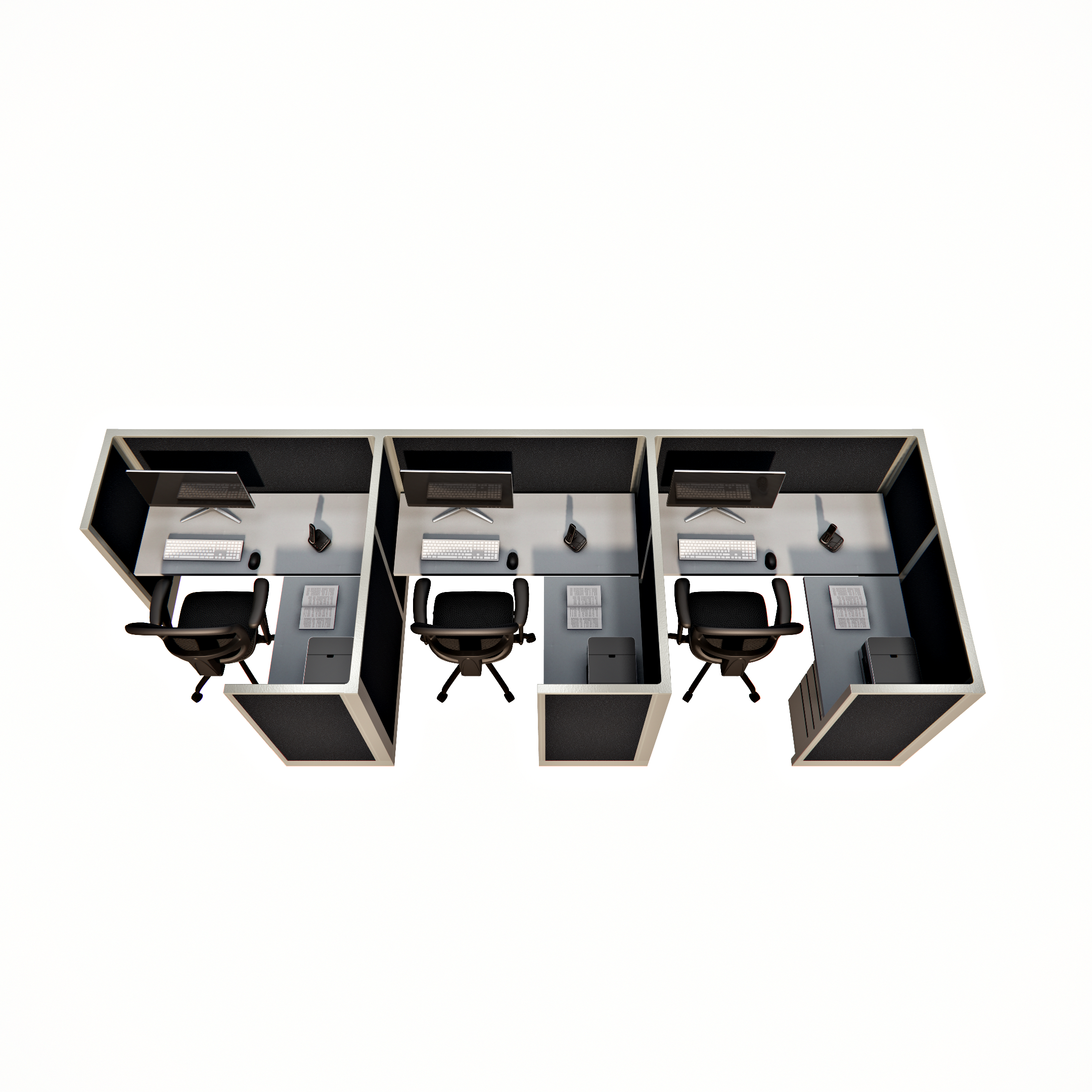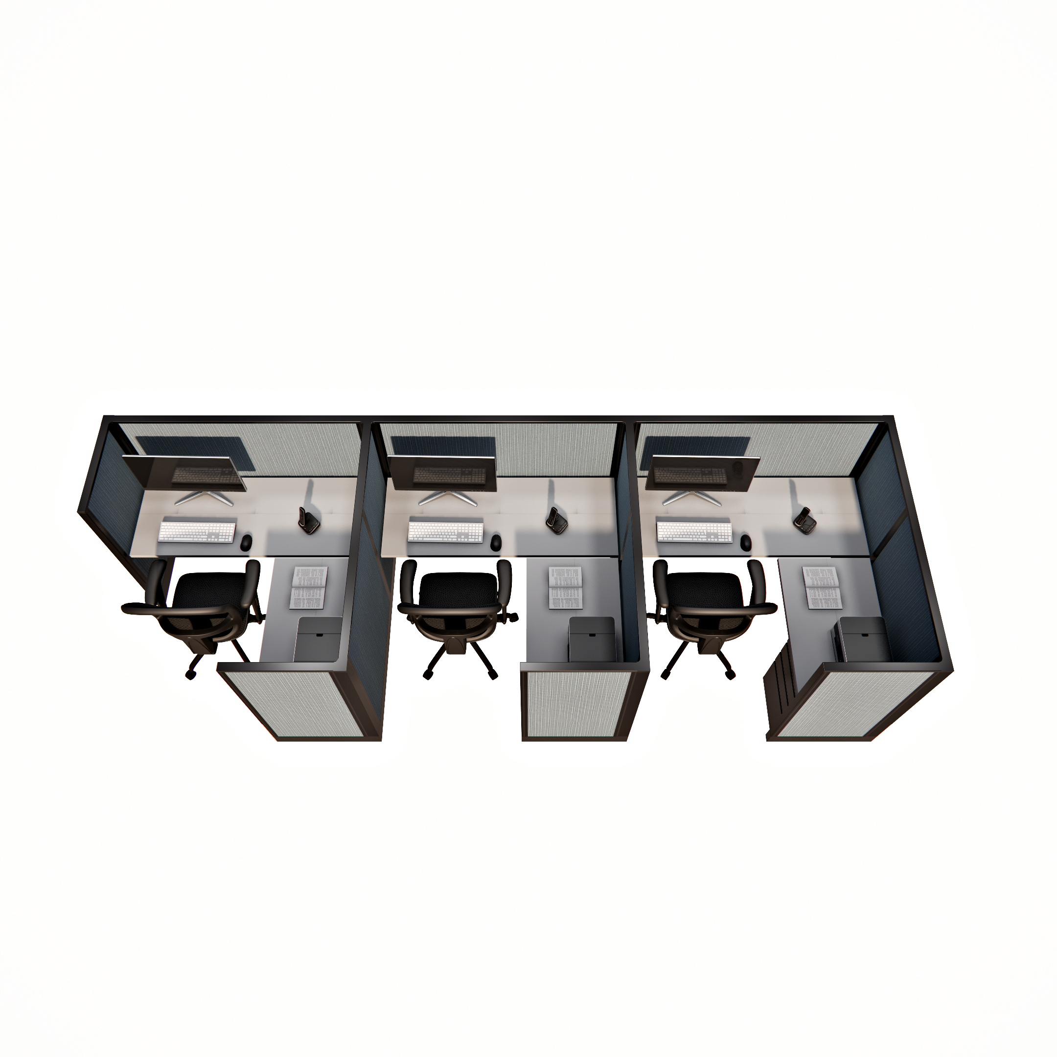 53″ Tall 5’x 5′ Line Of 3 Office Cubicles
