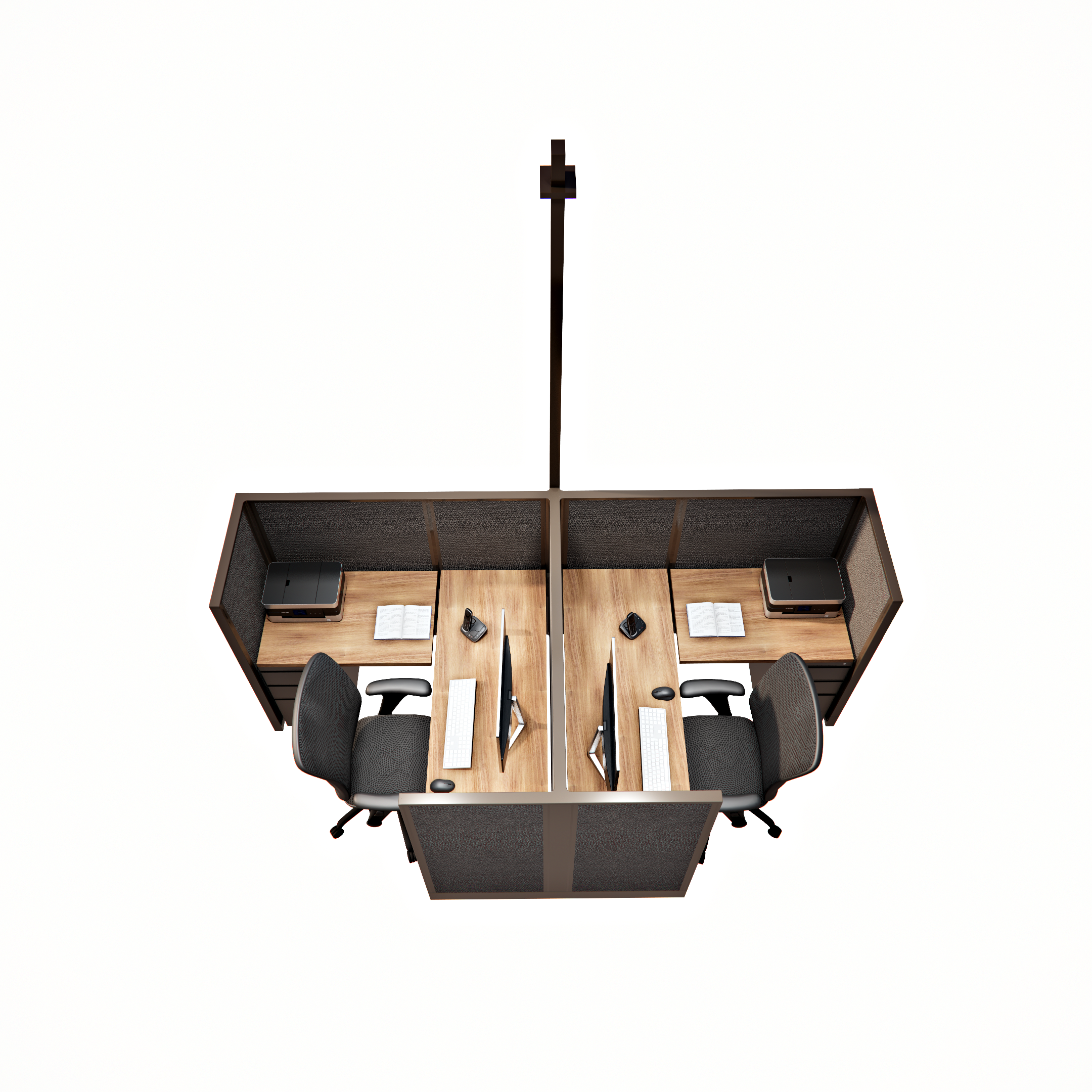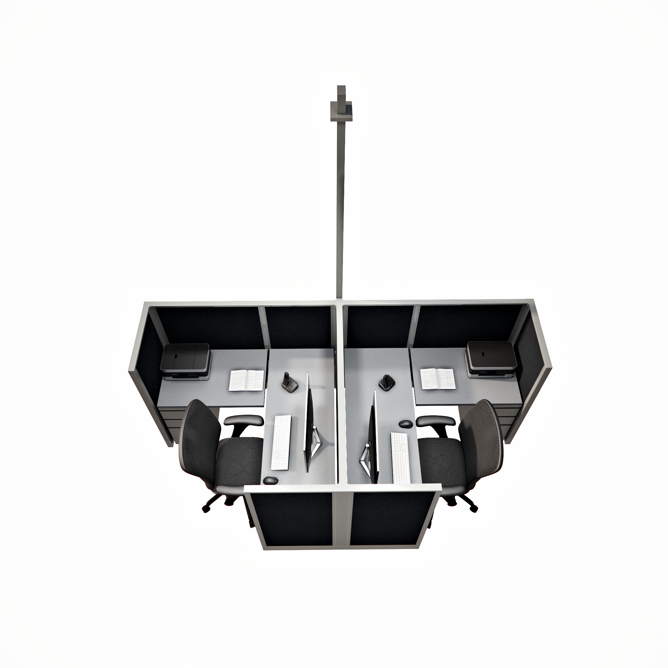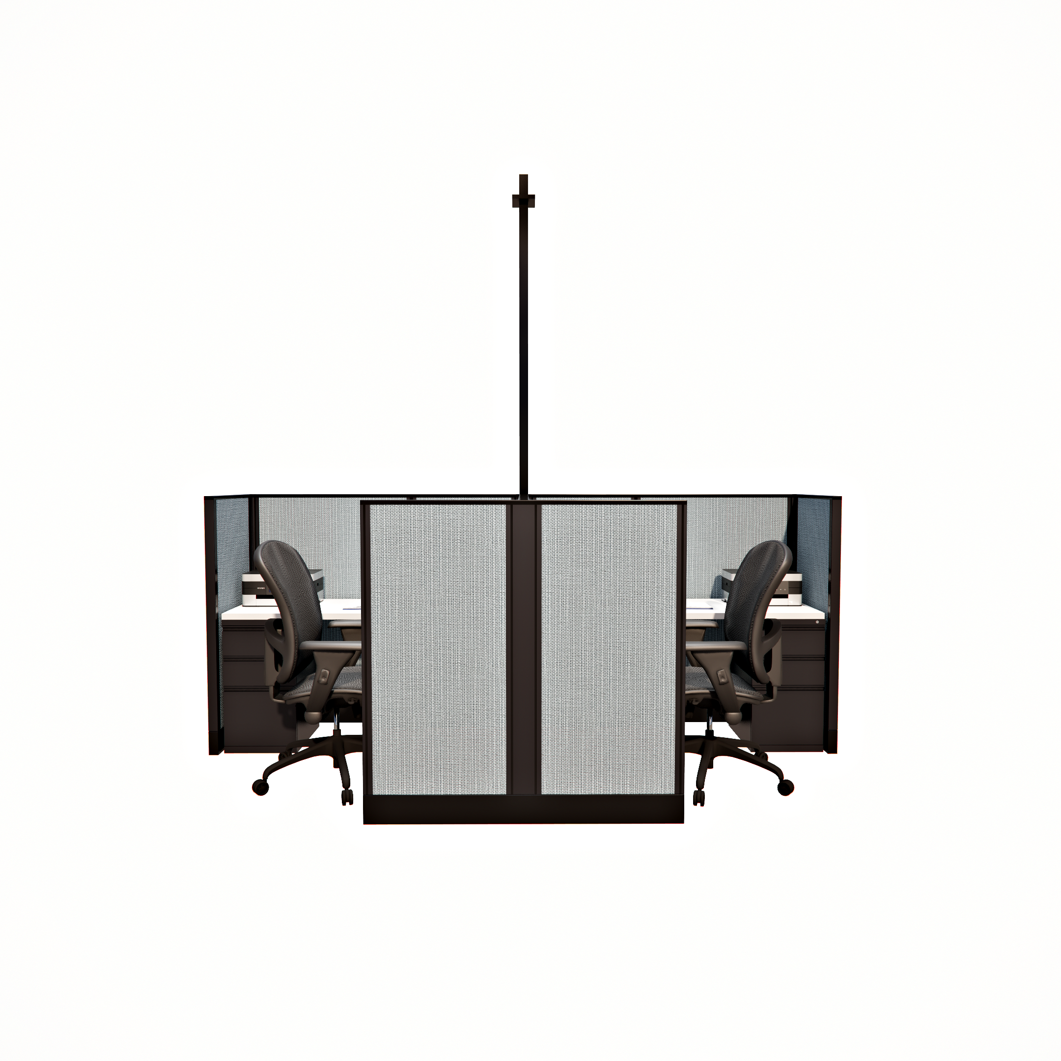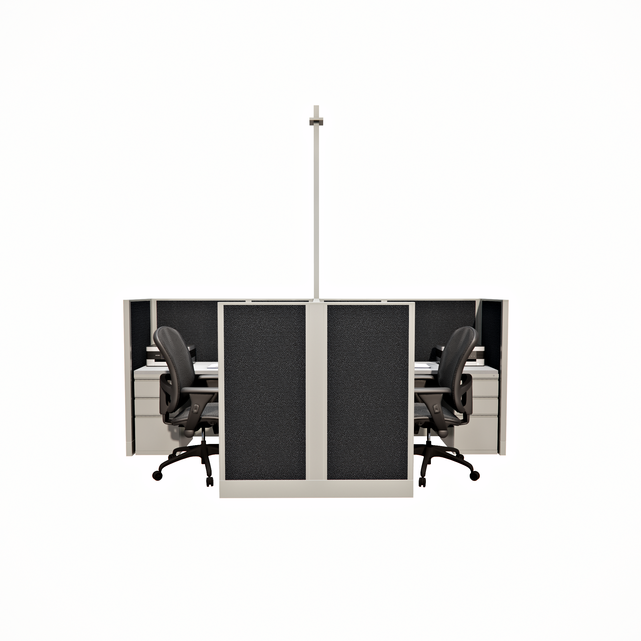 This pod of two 5’x5′ office cubicles, standing 53″ tall, is thoughtfully designed to enhance both privacy and connectivity in a shared workspace. Each cubicle includes durable fabric panels to help reduce noise, paired with sleek, easy-to-maintain laminate worksurfaces. The integrated power options allow for convenient device charging, ensuring a seamless workflow. Ideal for small teams or paired workstations, this configuration provides individual focus areas within a collaborative, close-knit setup.