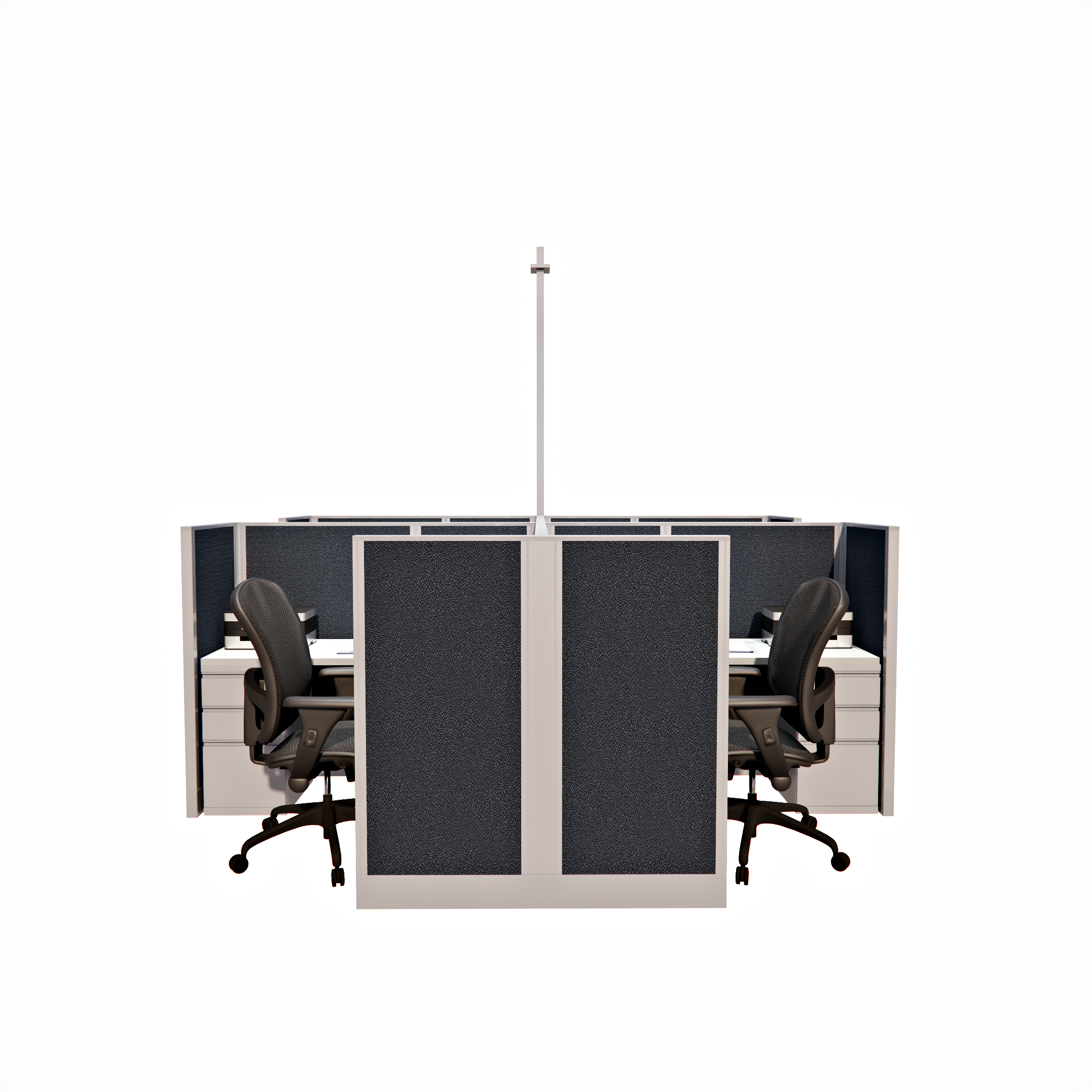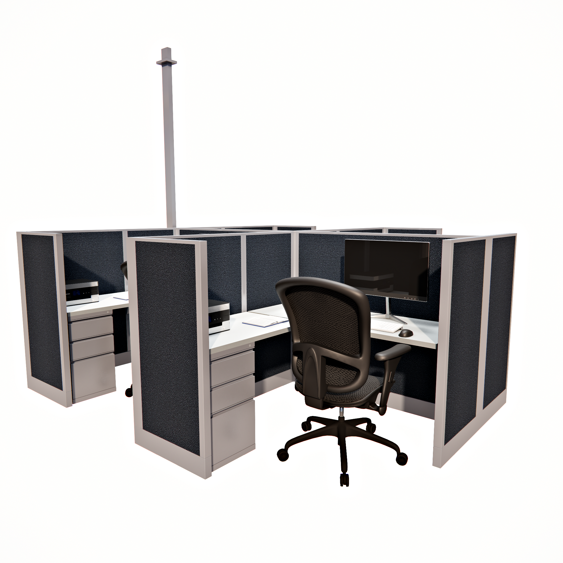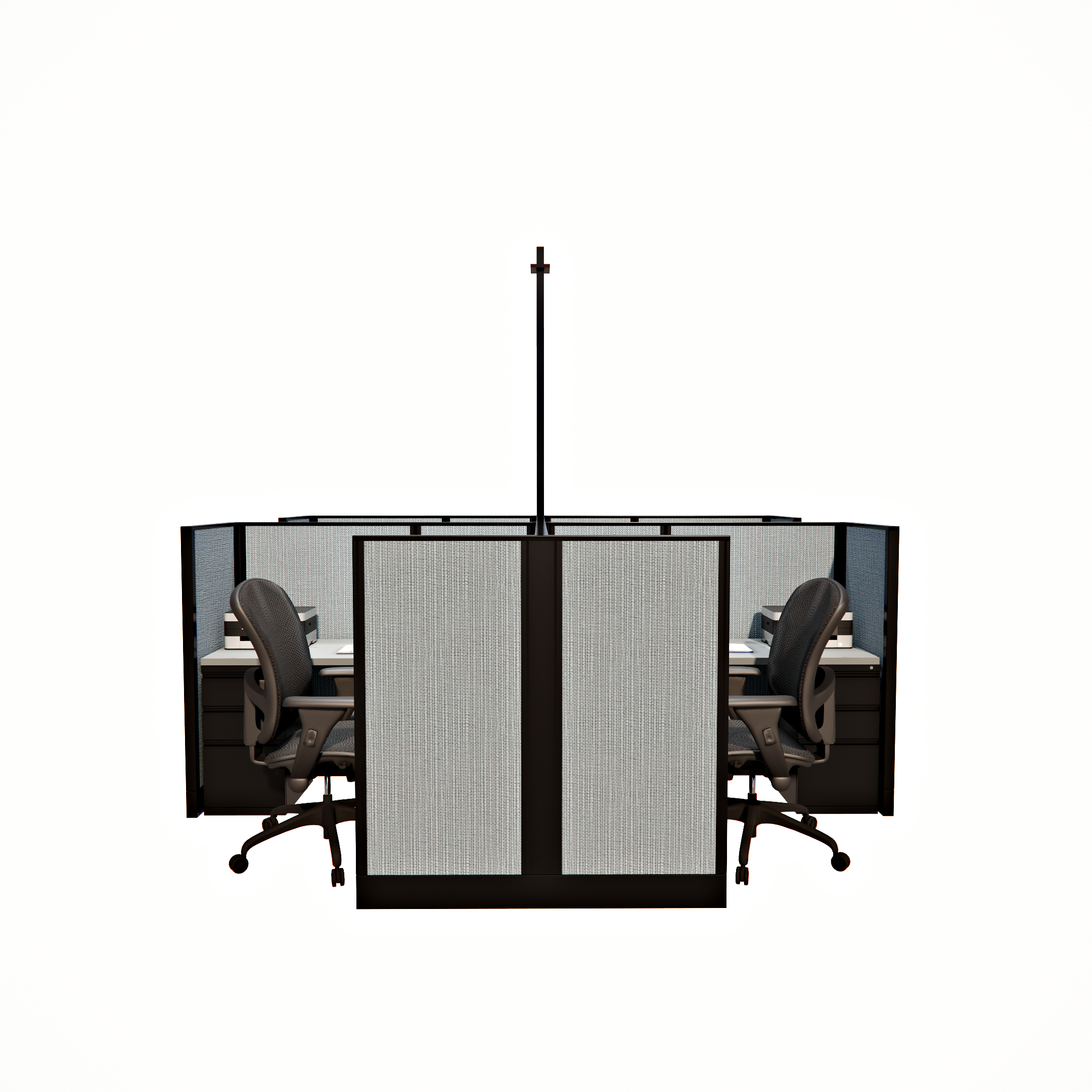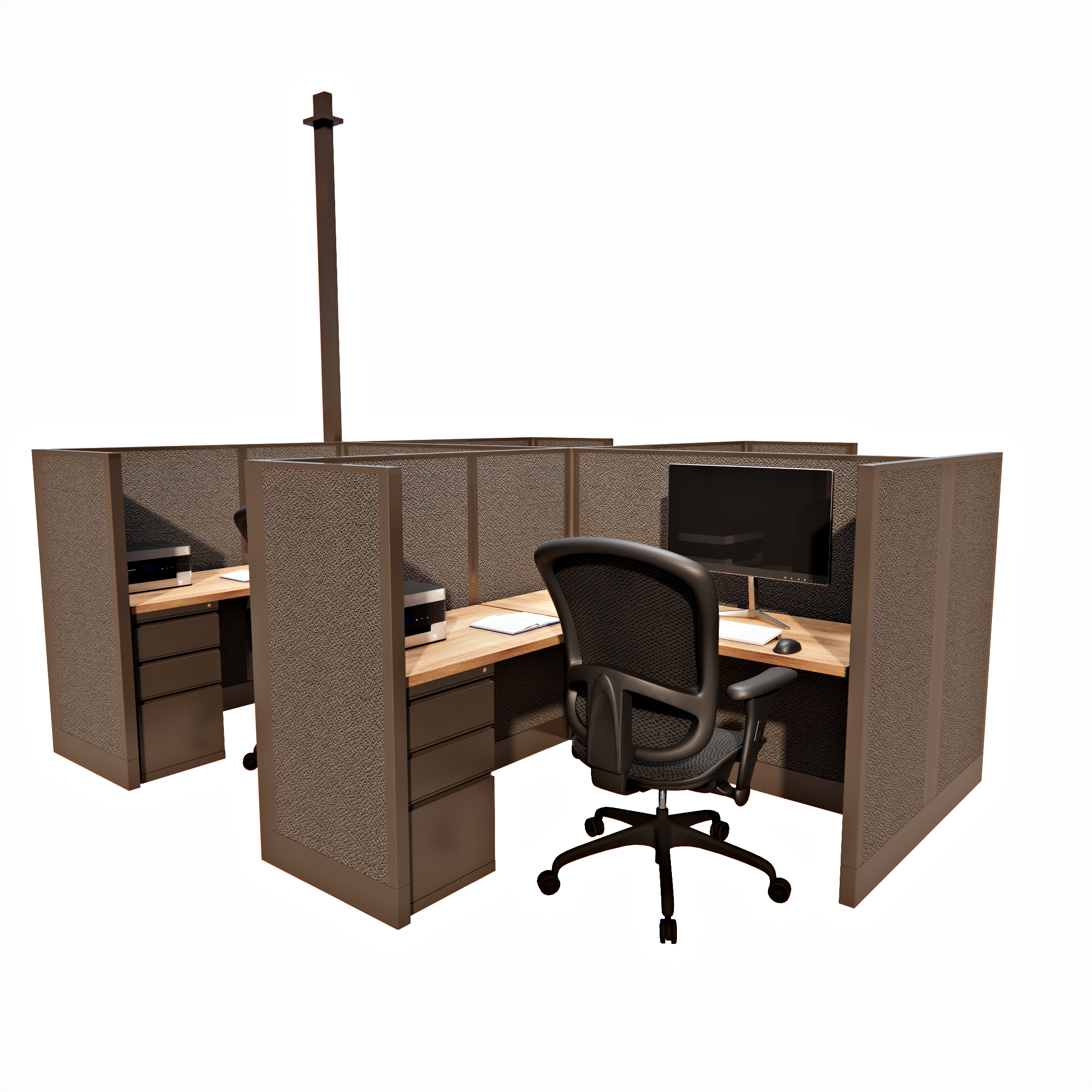 This pod of four 5’x5′ office cubicles, standing 53″ tall, is expertly designed to provide a balance of privacy and collaboration within a shared workspace. Each cubicle features durable fabric panels for effective noise reduction and laminate worksurfaces that are both stylish and easy to maintain. With integrated power options, team members can easily charge devices, supporting a seamless, efficient workflow. This configuration is ideal for mid-sized teams, offering individual work areas within a cohesive, collaborative pod setup.
