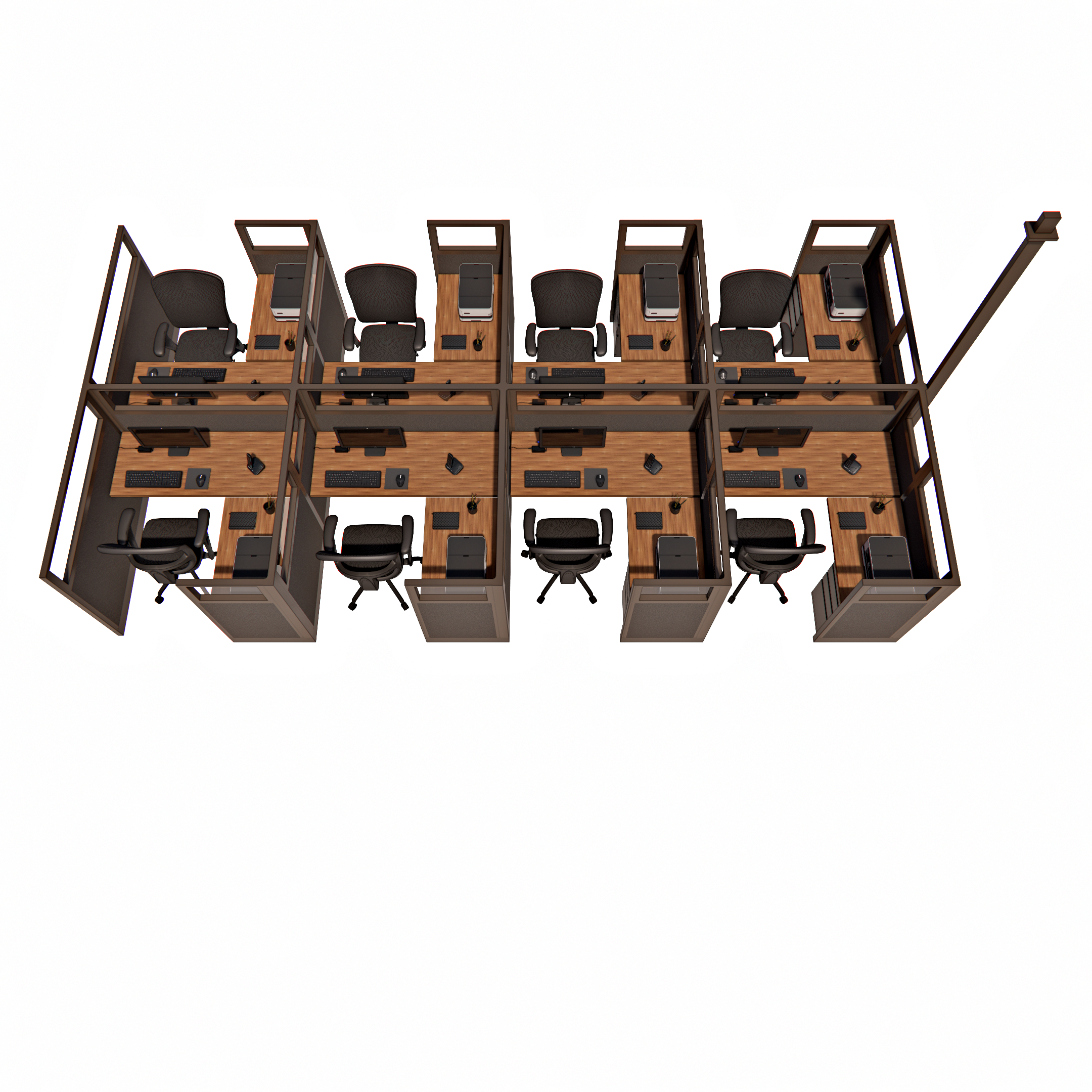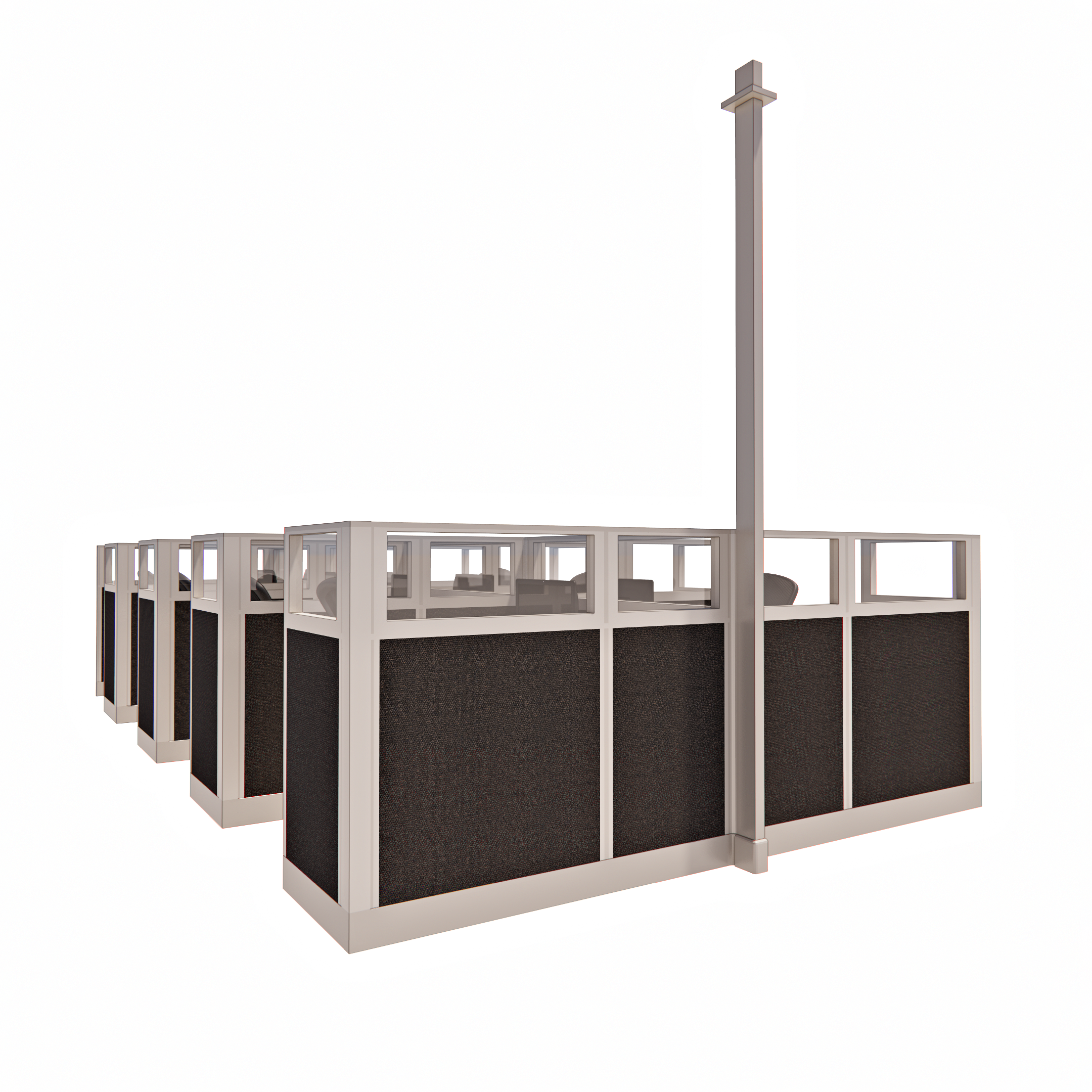 53″ Tall 5’x 5′ Pod of 8 Office Cubicles with Glass Stacke