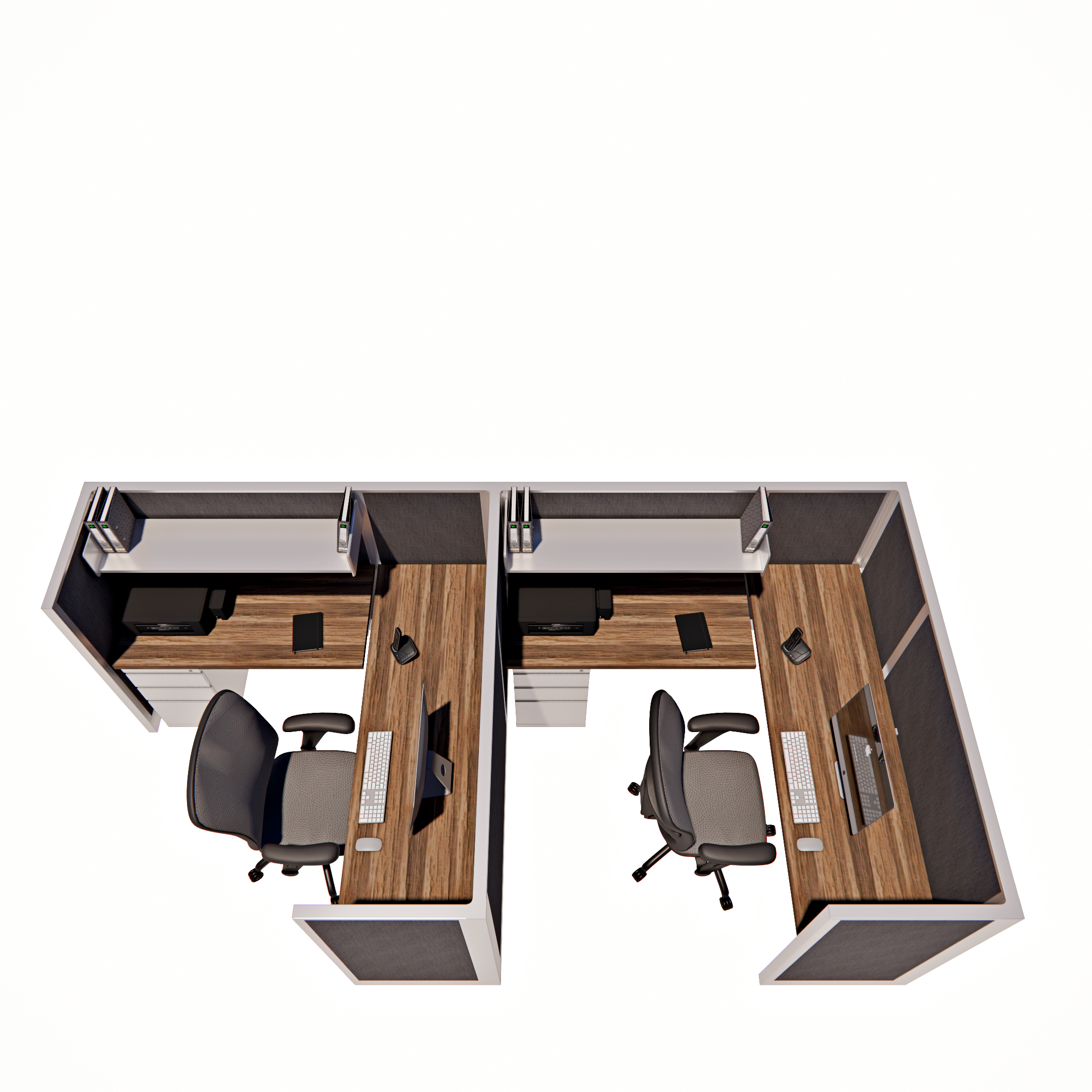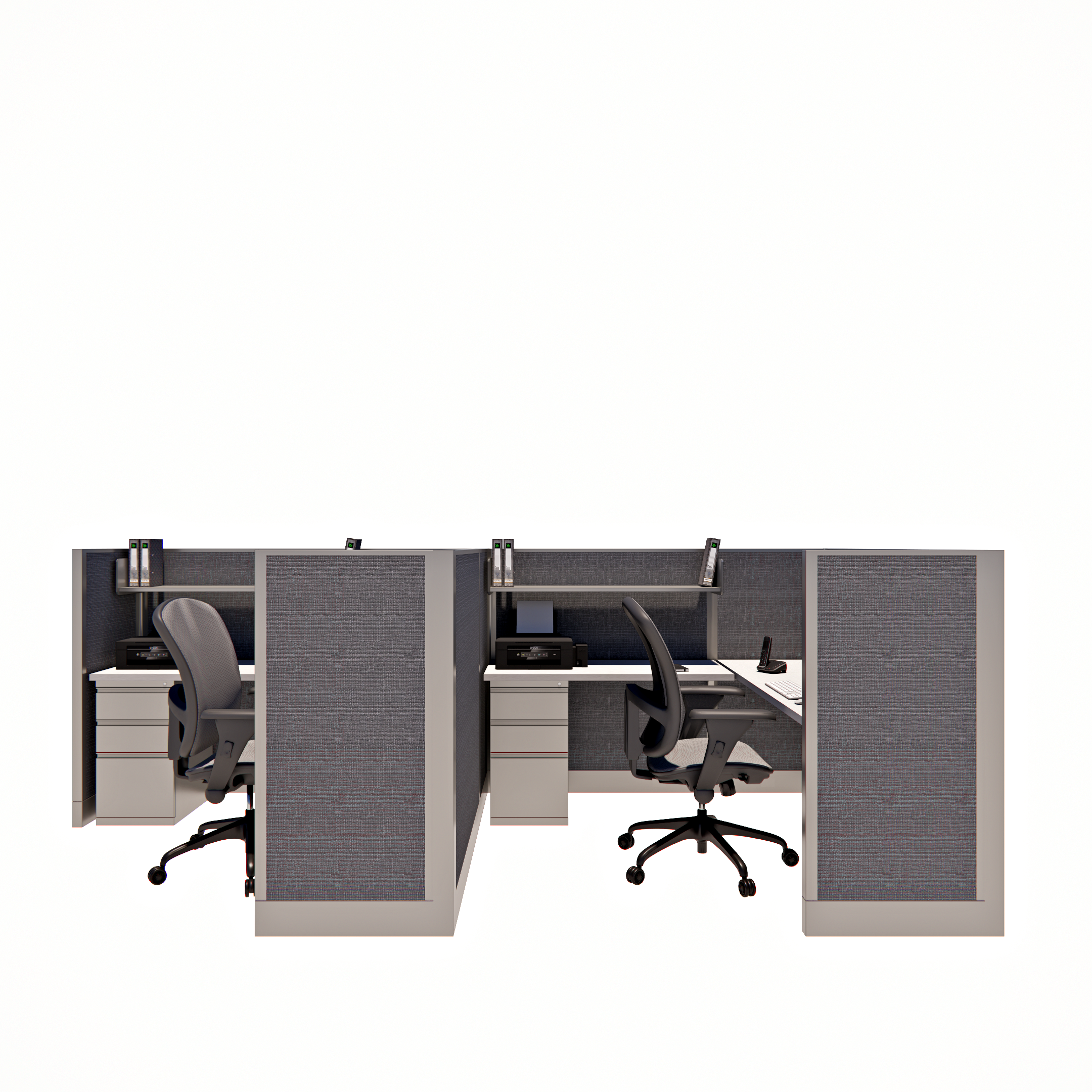 This line of two 53-inch tall office cubicles, each measuring 6 by 6 feet, is designed for a balanced mix of privacy and collaboration in a compact layout. The 53-inch height provides a level of seclusion while allowing for open sightlines across the workspace. Ideal for team environments, this configuration offers individual workstations with enough space for personal organization while keeping the layout efficient and accessible. Perfect for offices that prioritize both teamwork and individual focus within a streamlined footprint.