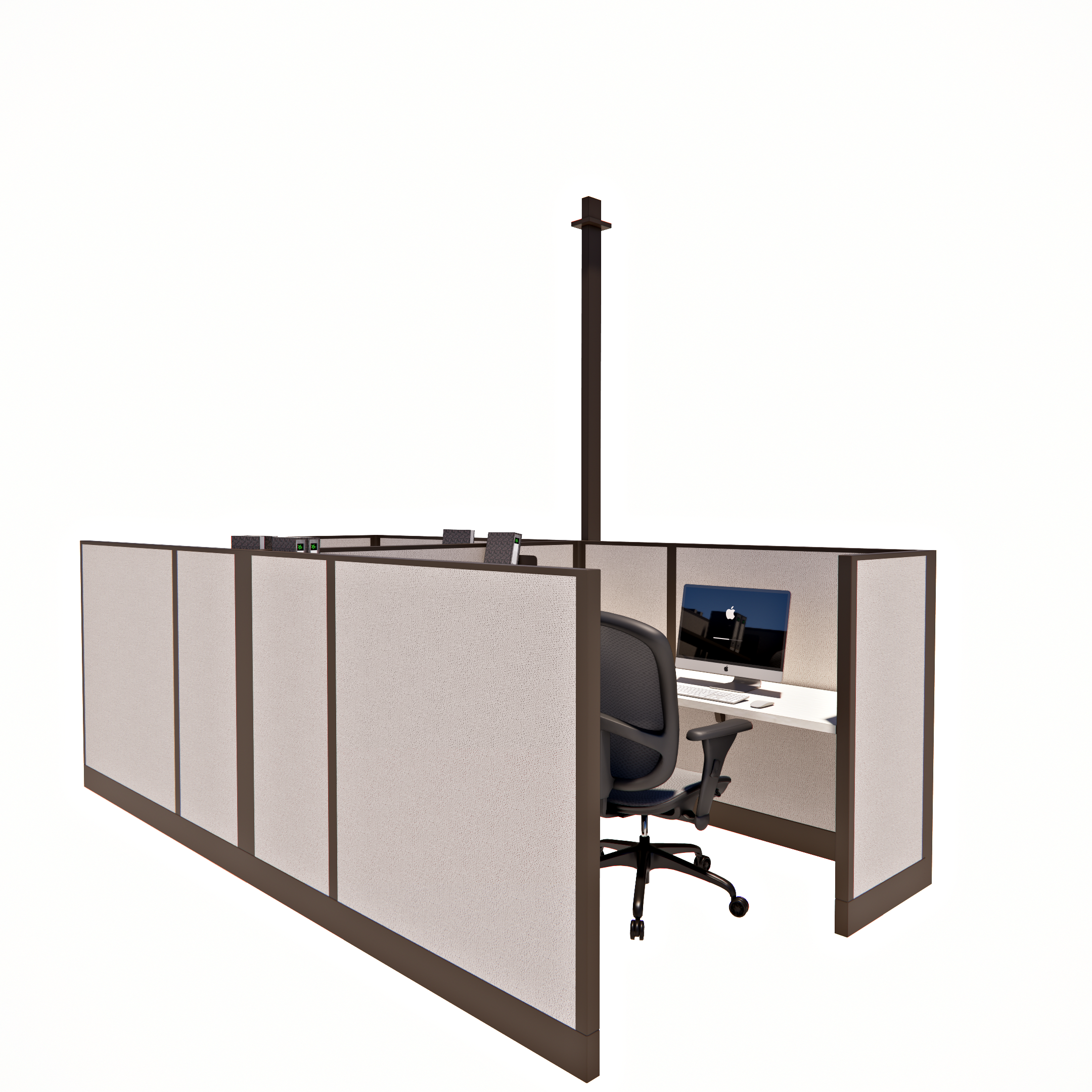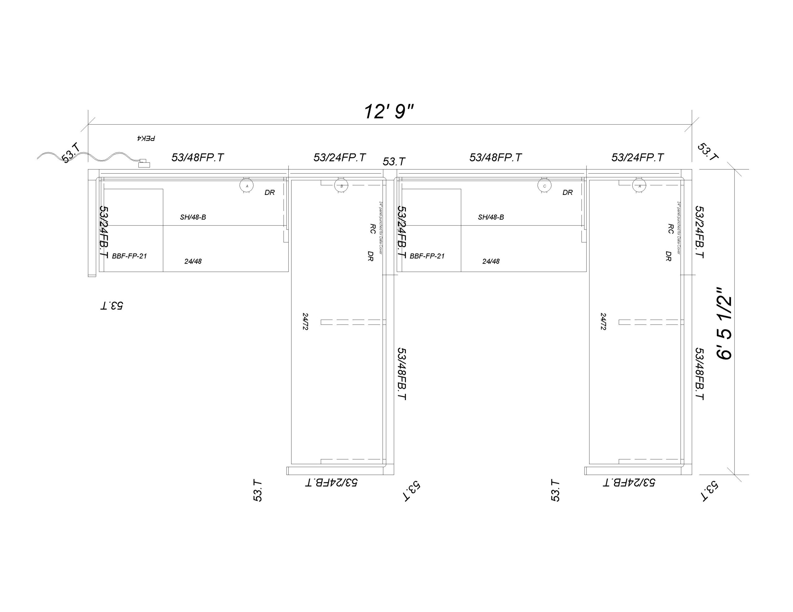 This pod of two 53-inch tall office cubicles, each measuring 6 by 6 feet, is designed for compact yet comfortable individual workspaces. With 53-inch panels, this configuration provides just the right amount of privacy while keeping the workspace open and collaborative. Each cubicle offers ample room for personal organization and productivity, making it ideal for offices that need a functional, space-efficient layout. This setup works well for small teams or pairs, providing a balanced environment for both focused work and easy communication.