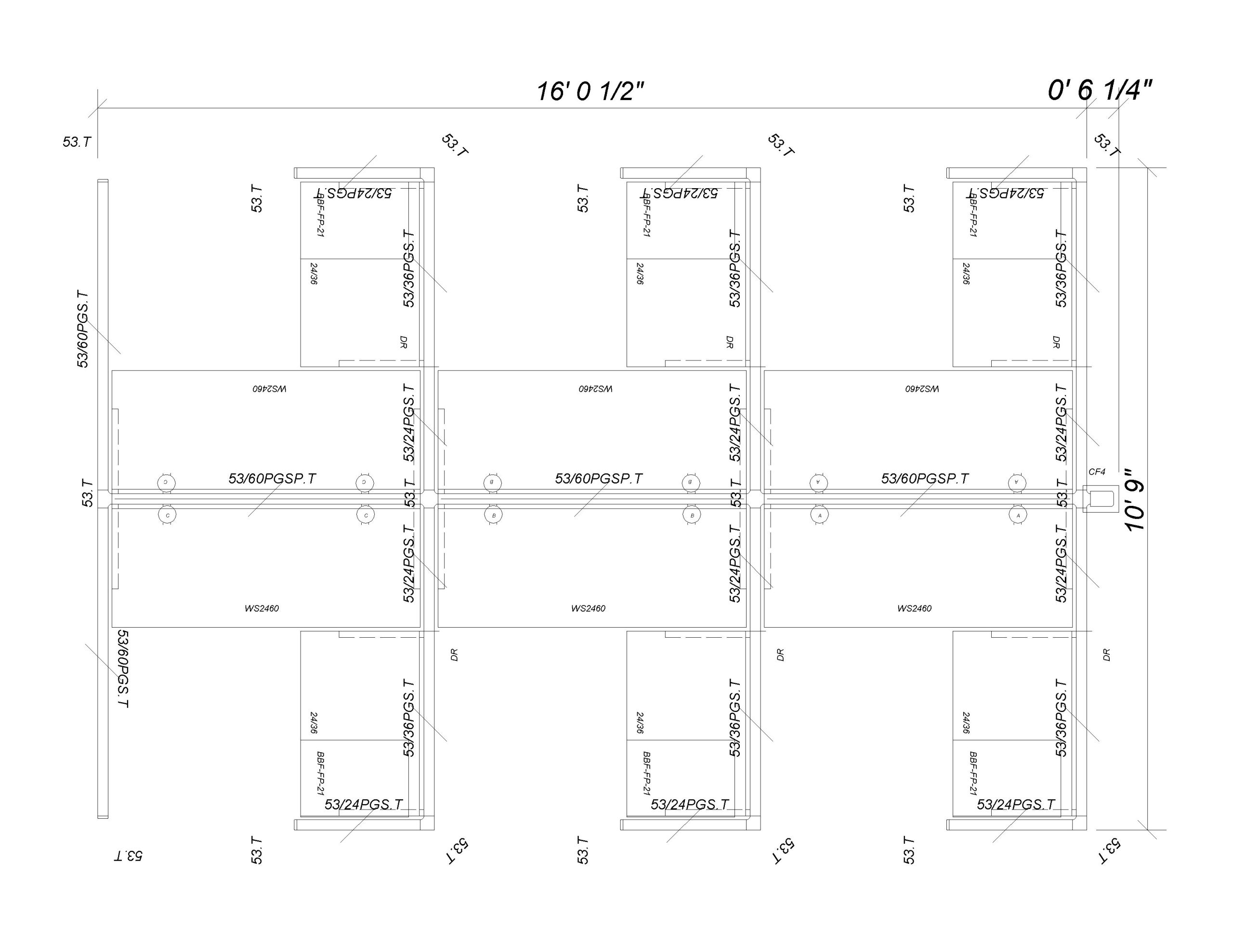This pod of six 53-inch tall office cubicles, each with a 5 by 5-foot layout, includes glass stacker panels that extend the height and bring in natural light, creating a bright yet private workspace. The glass stackers enhance visibility while adding an open, spacious feel to each cubicle, allowing for easy communication among team members without sacrificing individual focus. This configuration is well-suited for teams needing distinct workstations that promote both collaboration and a sense of privacy, making it a versatile choice for busy, shared office environments.