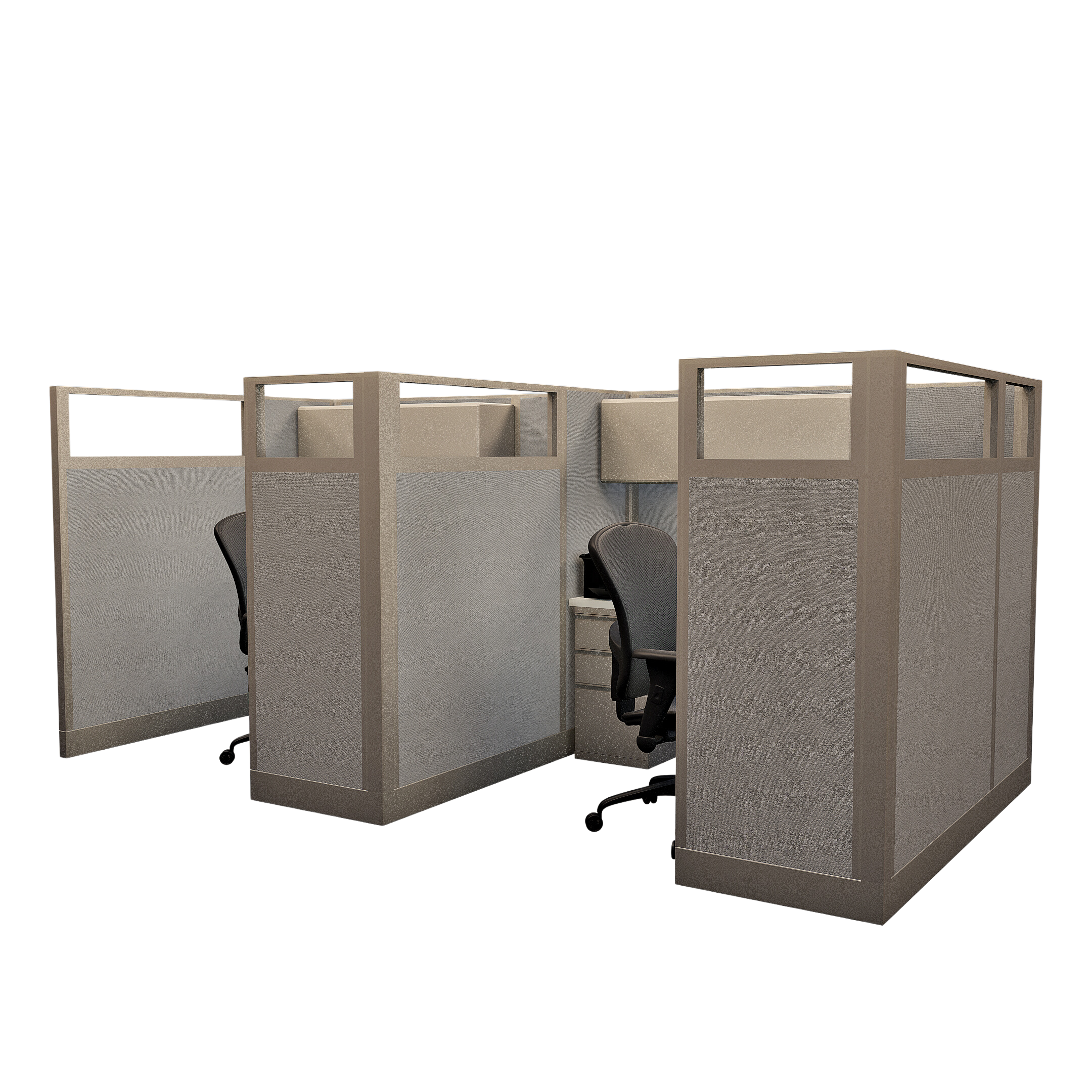 This is a standard cubicle configuration available in any quantity, with a combination of configurations and heights. They can be customized and modified to perfectly suit your space and specific needs. We offer discounts; options can be added or removed to accommodate your budget. Standard configurations provide a clear cost, while a space plan delivers a tailored solution.