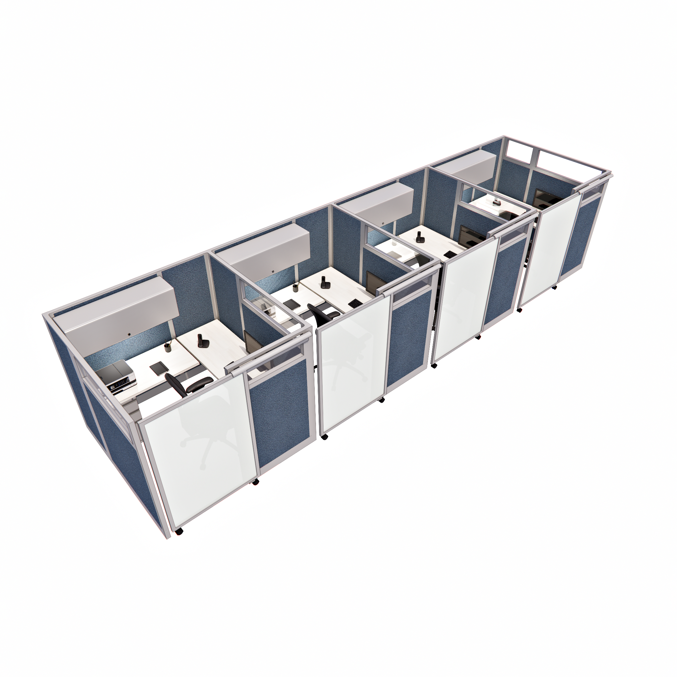 67″ Tall 6’x 6′ Line Of 4 Glass Office Cubicles with Door