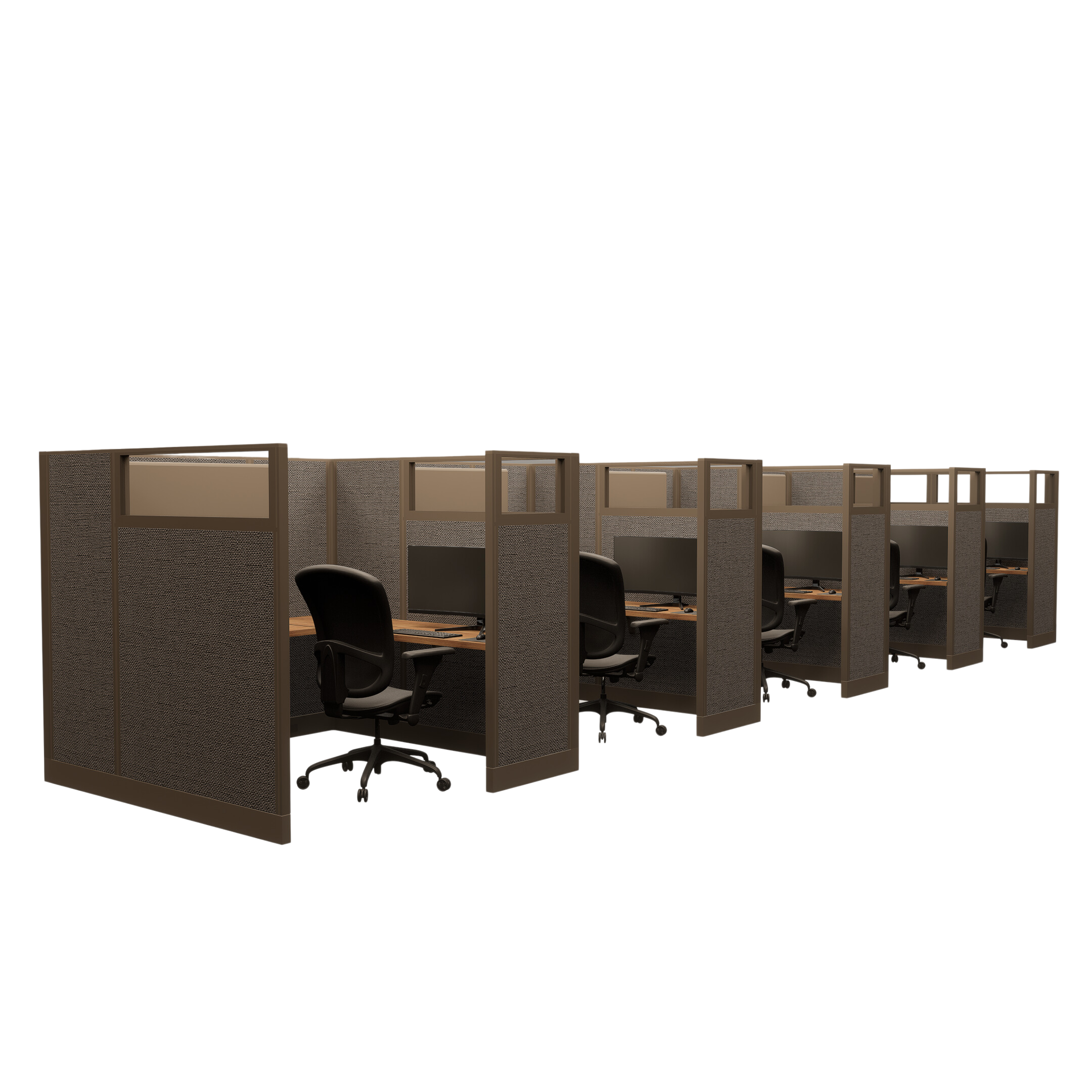 67″ Tall 6’x 6′ Line Of 5 Office Cubicles with Glass