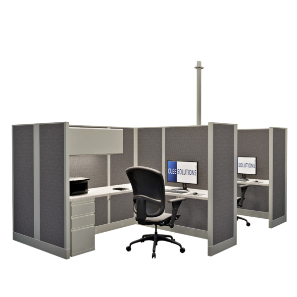 This is a standard cubicle configuration available in any quantity, with a combination of configurations and heights. They can be customized and modified to perfectly suit your space and specific needs. We offer discounts; options can be added or removed to accommodate your budget. Standard configurations provide a clear cost, while a space plan delivers a tailored solution.
