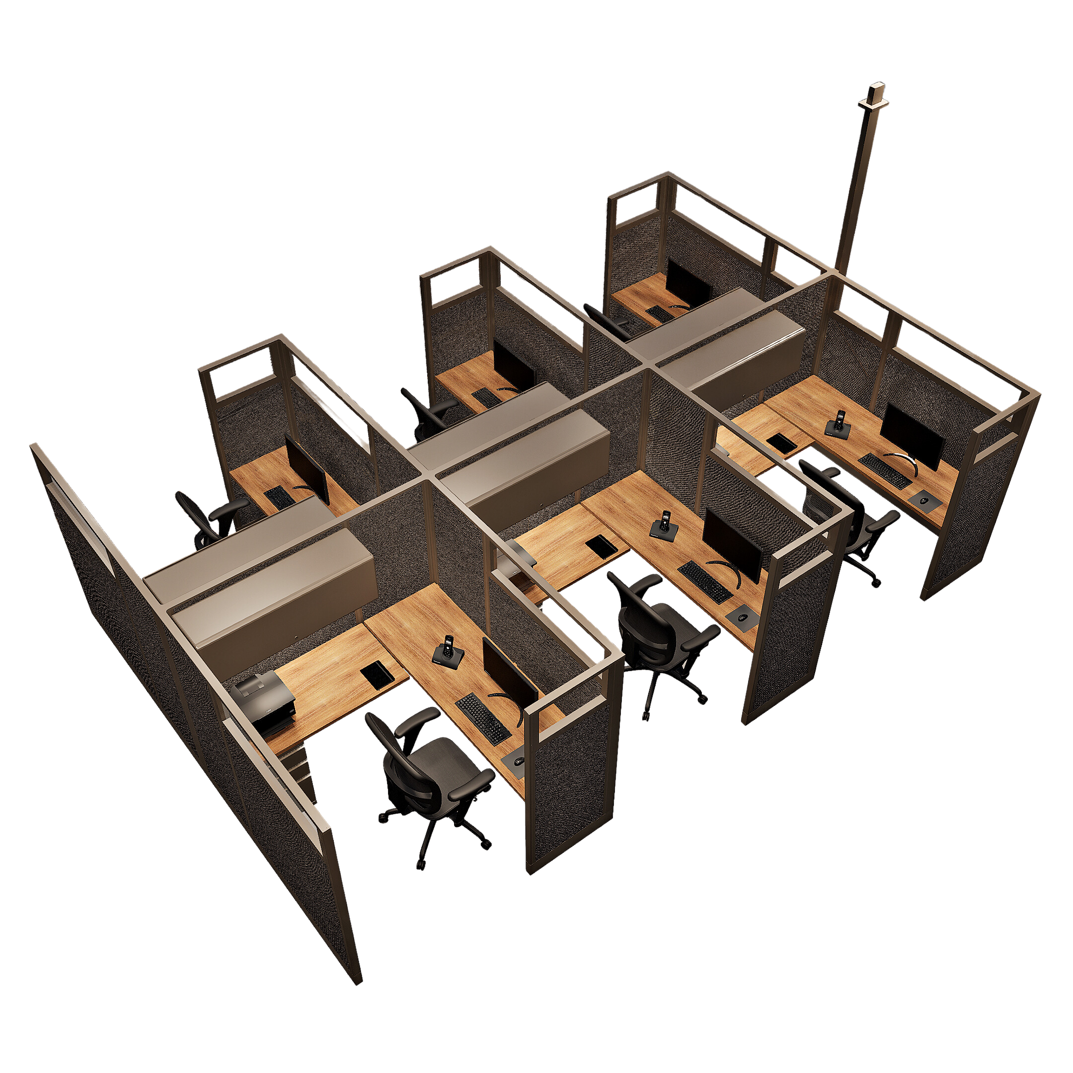 67″ Tall 6’x 6′ Pod of 6 Office Cubicles with Glass