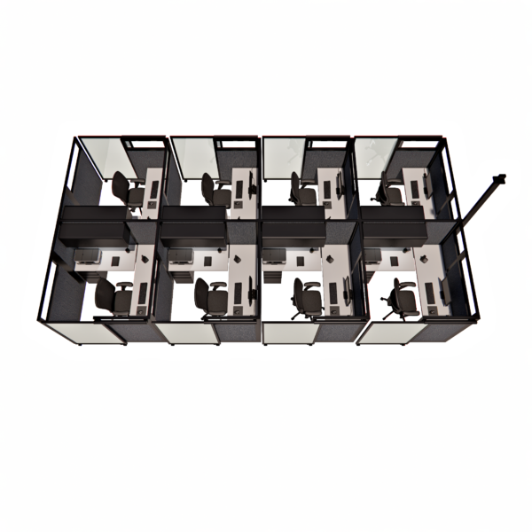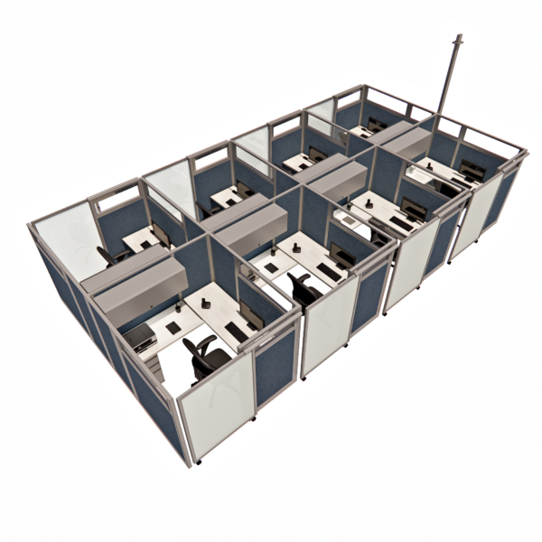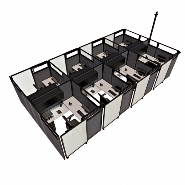 67″ Tall 6’x 6′ Pod of 8 Glass Office Cubicles with Door