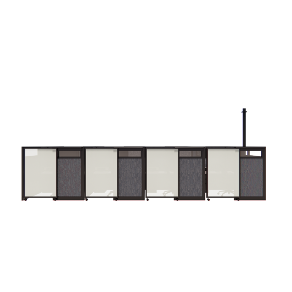 This pod of eight 67-inch tall glass office cubicles, each measuring 6 by 6 feet, provides a spacious and private workspace with a sleek, modern design. Each cubicle is equipped with glass panels for an open feel and includes a sliding plexiglass door, offering easy access while conserving floor space. The non-locking doors and transparent walls allow natural light to flow through the workspace, creating a bright and inviting atmosphere. This setup is ideal for larger teams, combining individual privacy with a sense of openness, making it a perfect choice for a collaborative yet focused office environment.