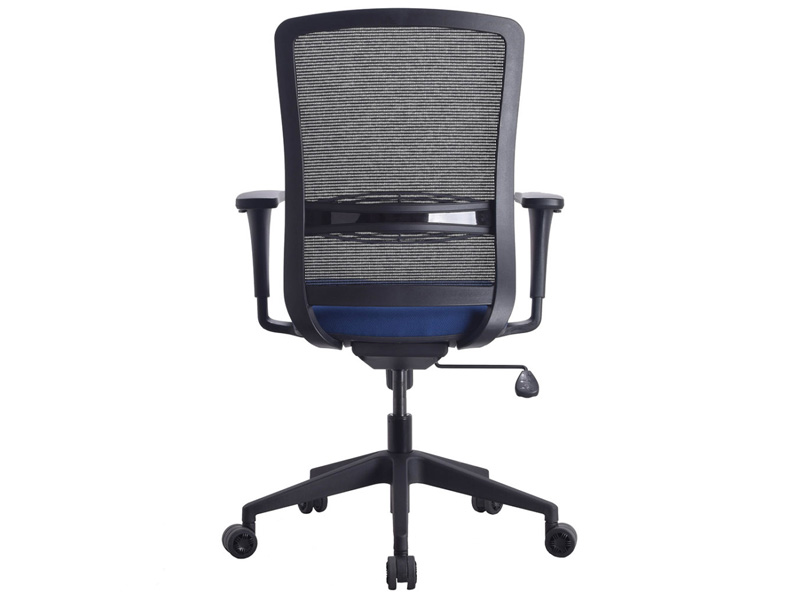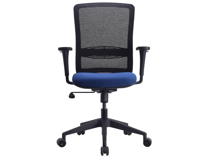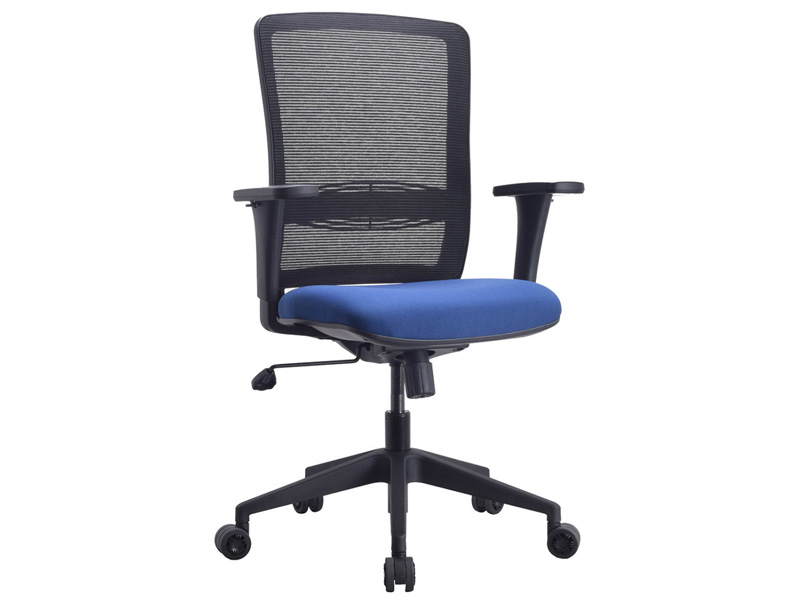 - Mid Back Task chair, Black mesh back, Blue fabric cushion seat